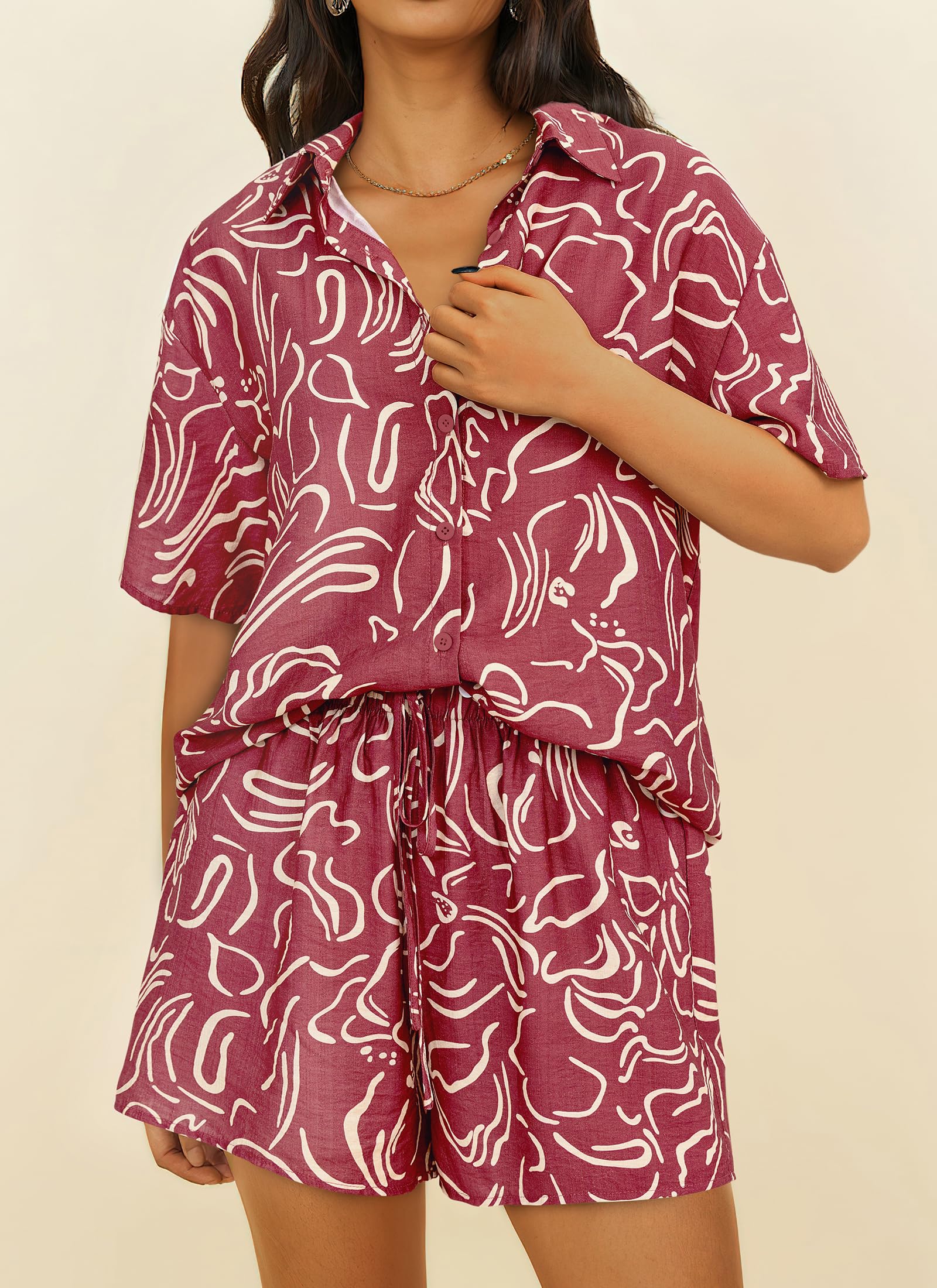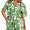 2 Piece Summer Beach Outfits Printed Short Sleeve Tops Lounge Shorts Casual Tracksuit Set