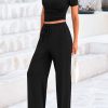 Design: Pleated at the waist, wide-leg pants with an elastic belt and drawstring