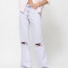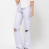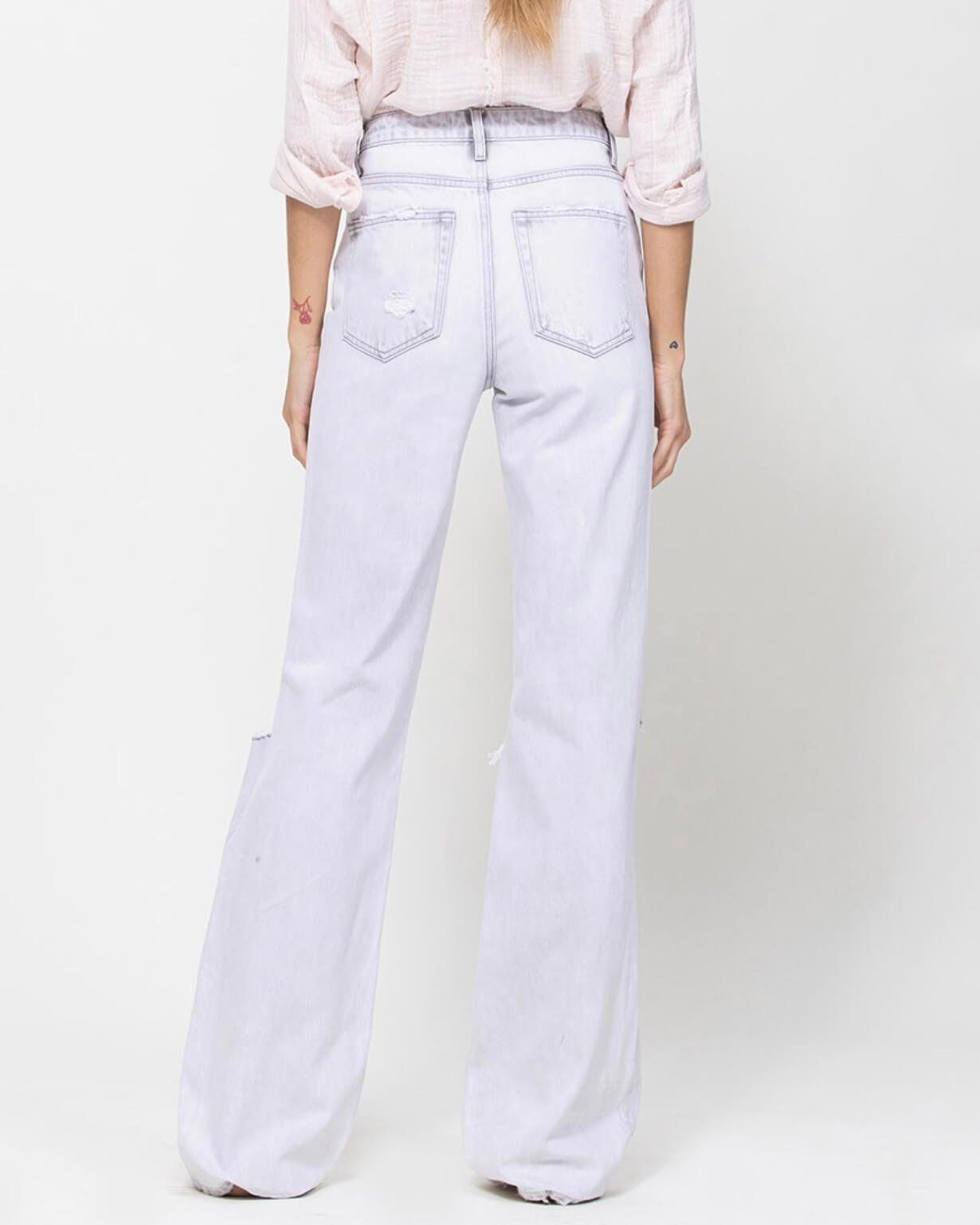 Complete your vintage outfit with a pair of these light wash flared jeans! These high waisted jeans feature a slim fit through the hip and thigh for a flattering fit.