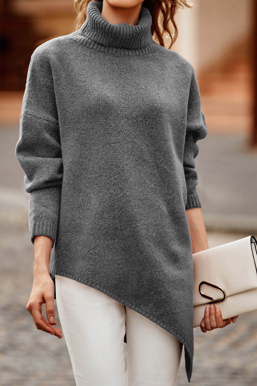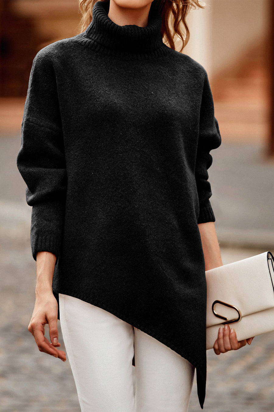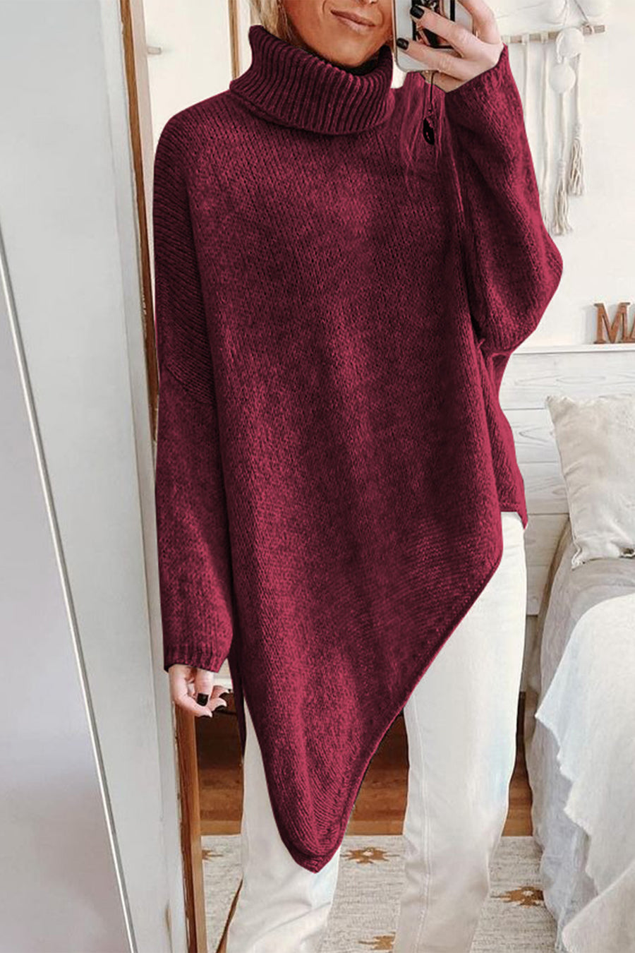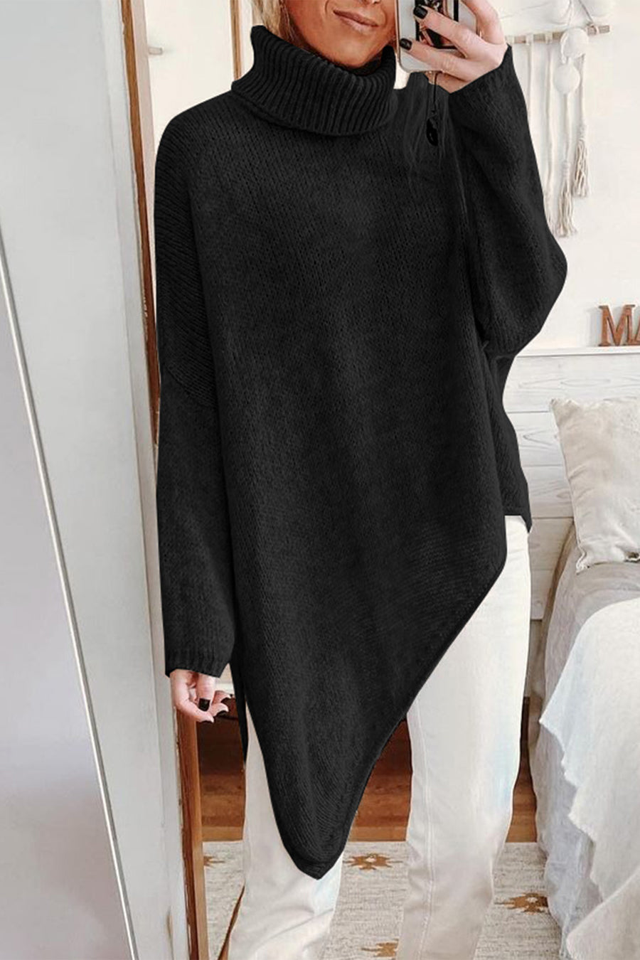 Asymmetric Hem Oversized Turtleneck Sweater