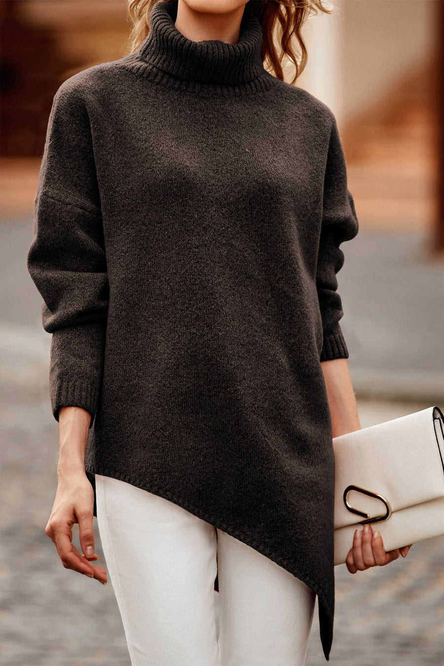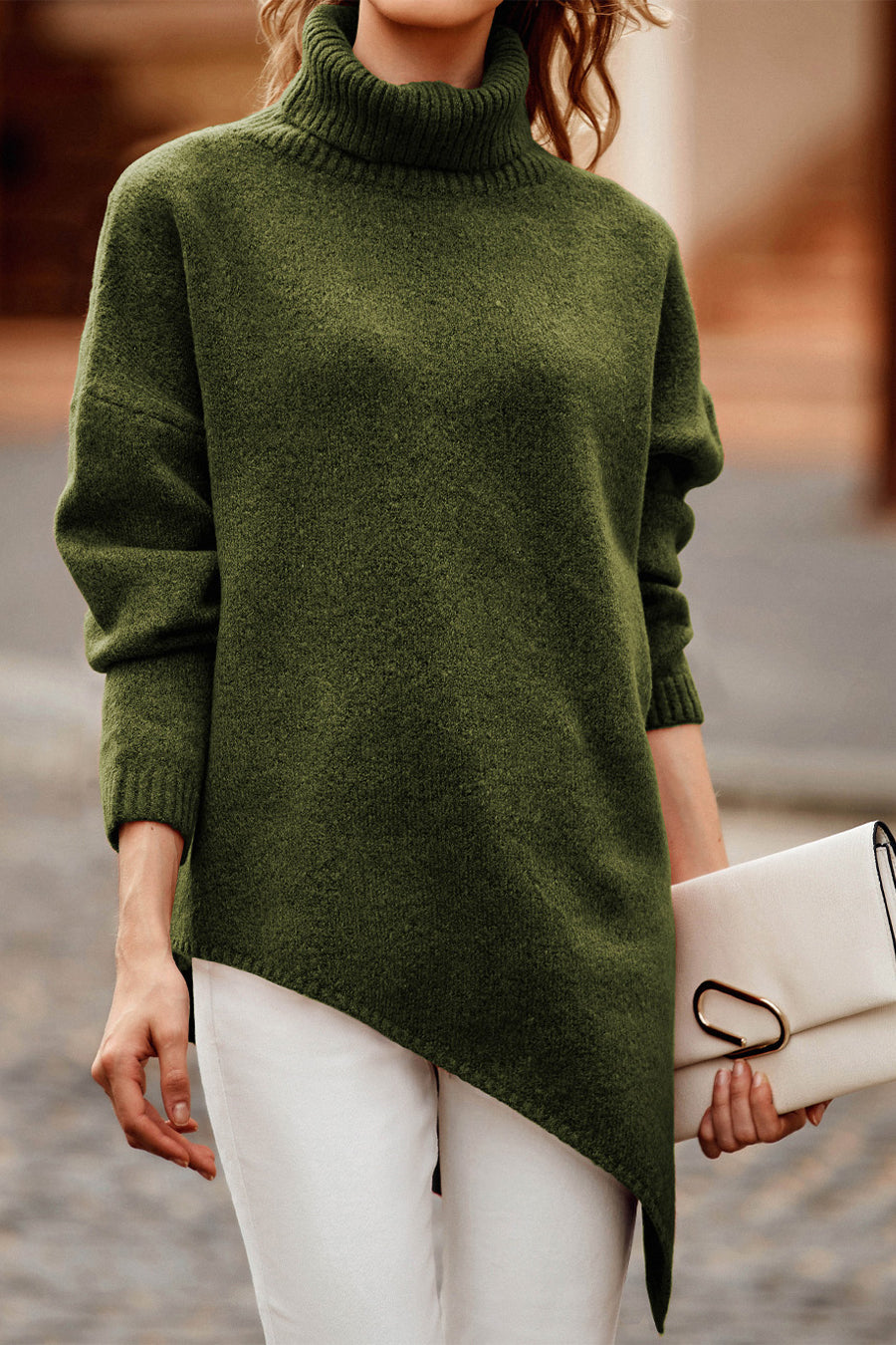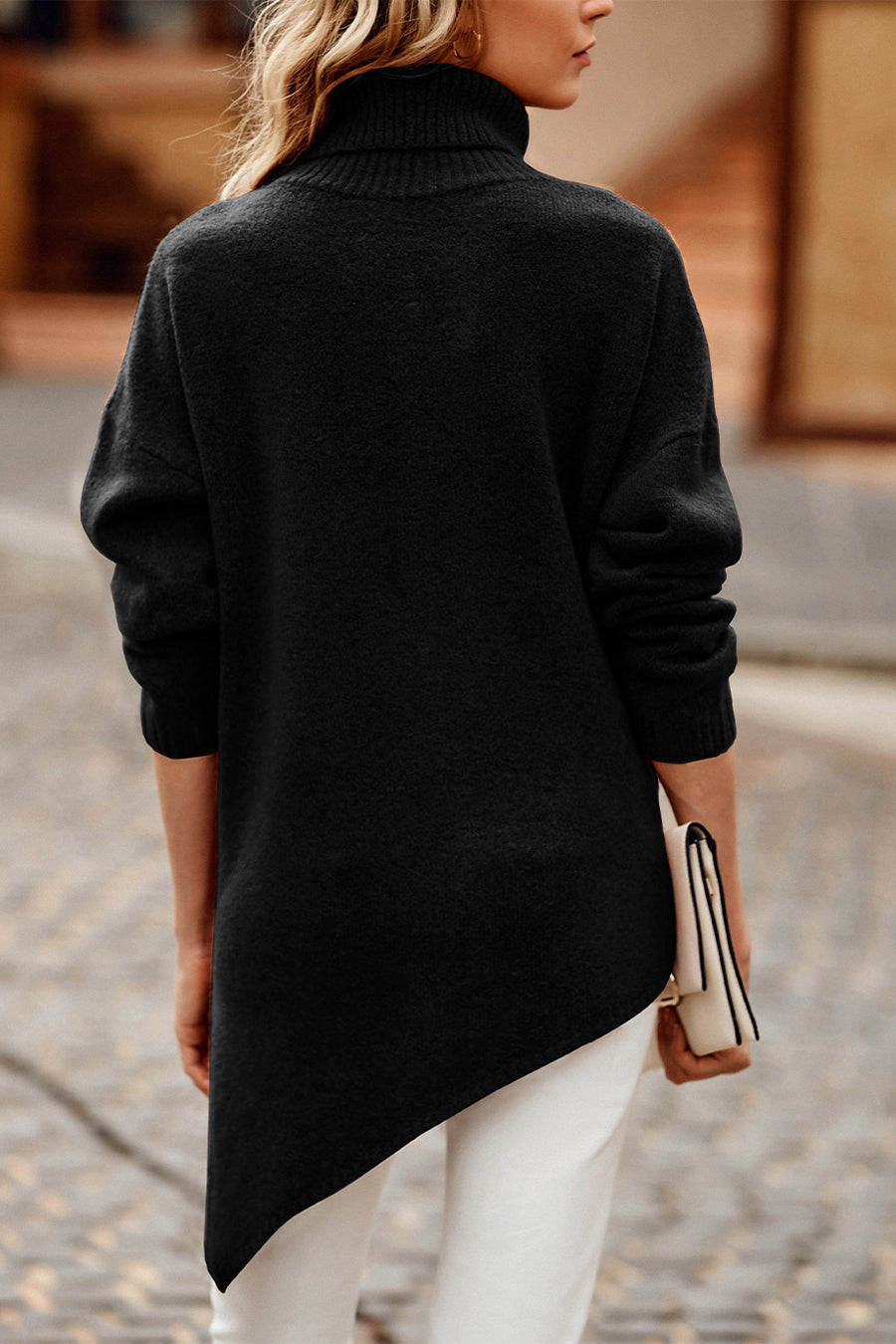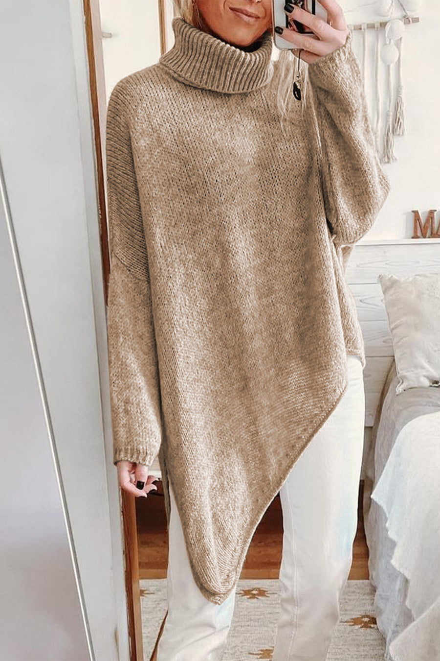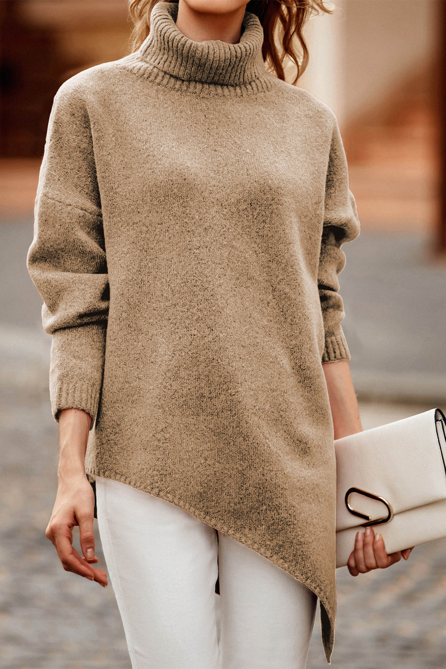 Asymmetric Hem Oversized Turtleneck Sweater
