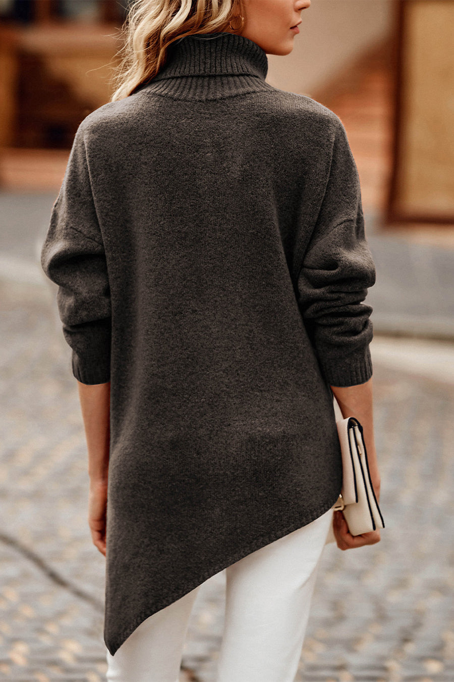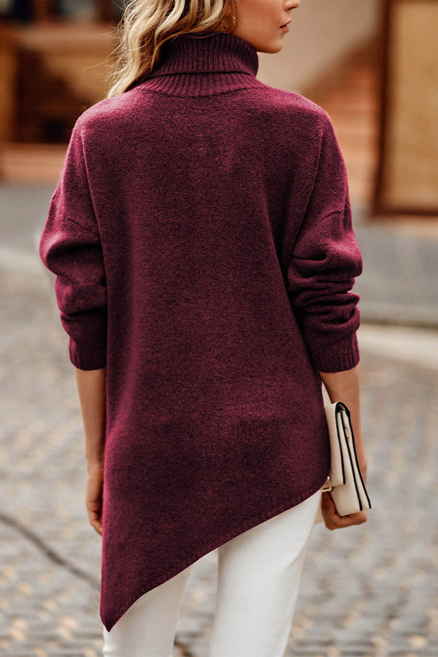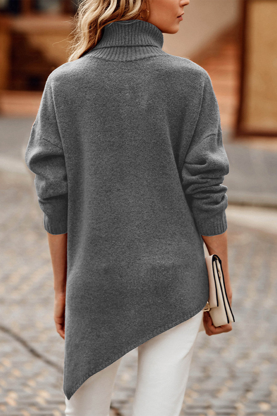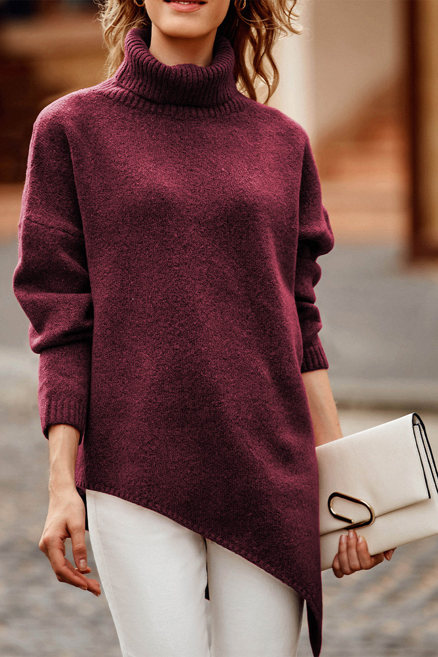 Asymmetric Hem Oversized Turtleneck Sweater