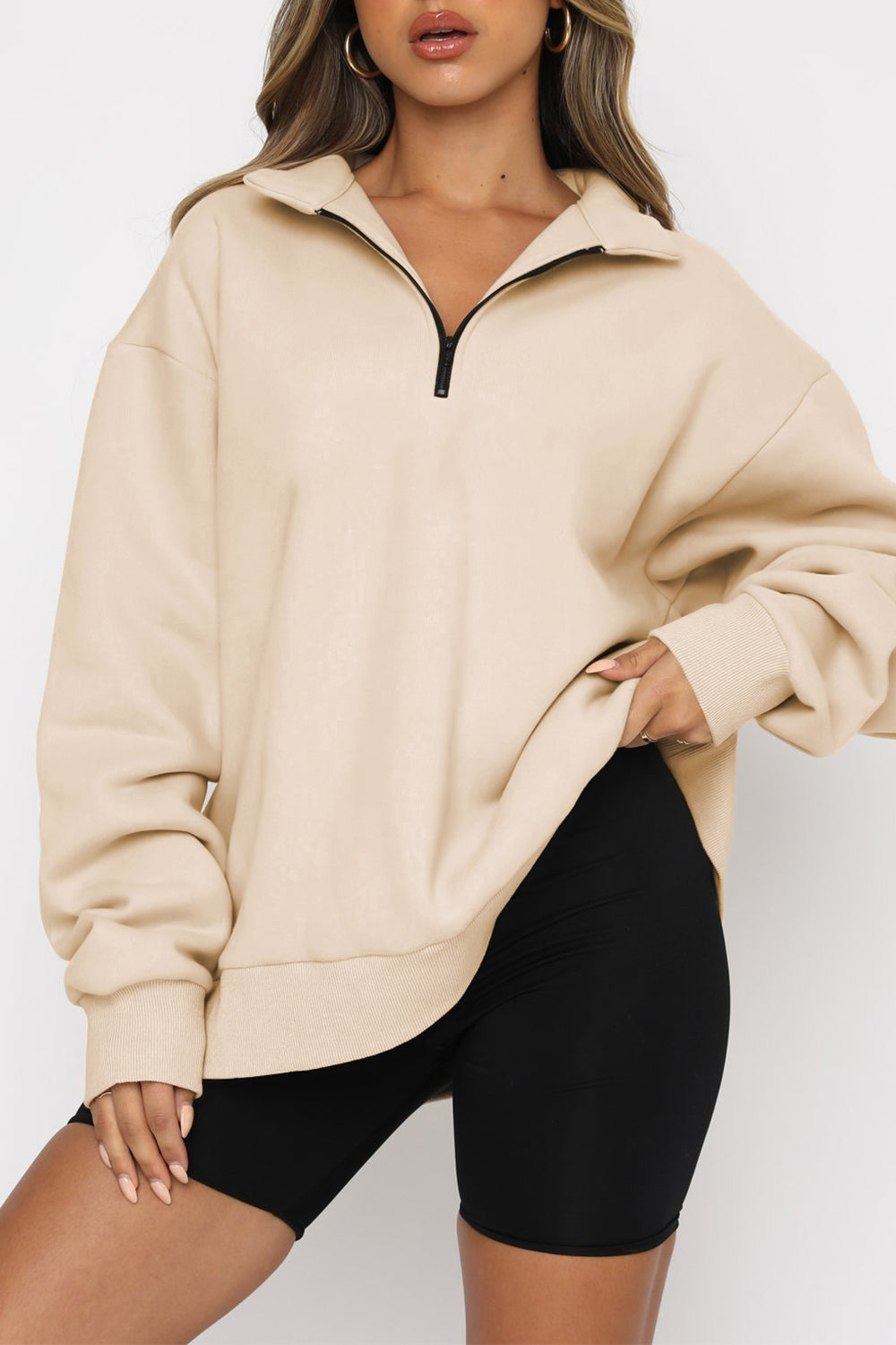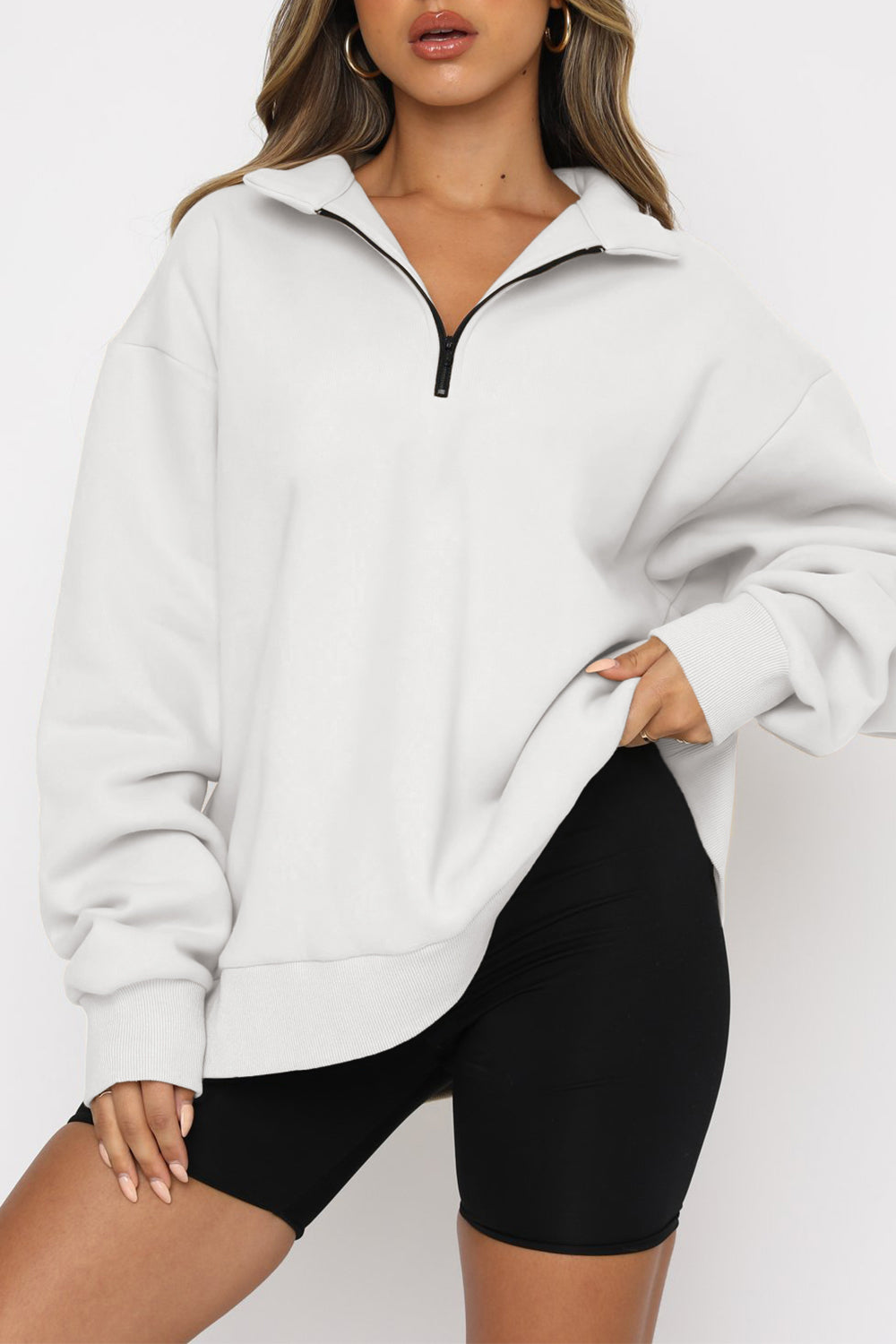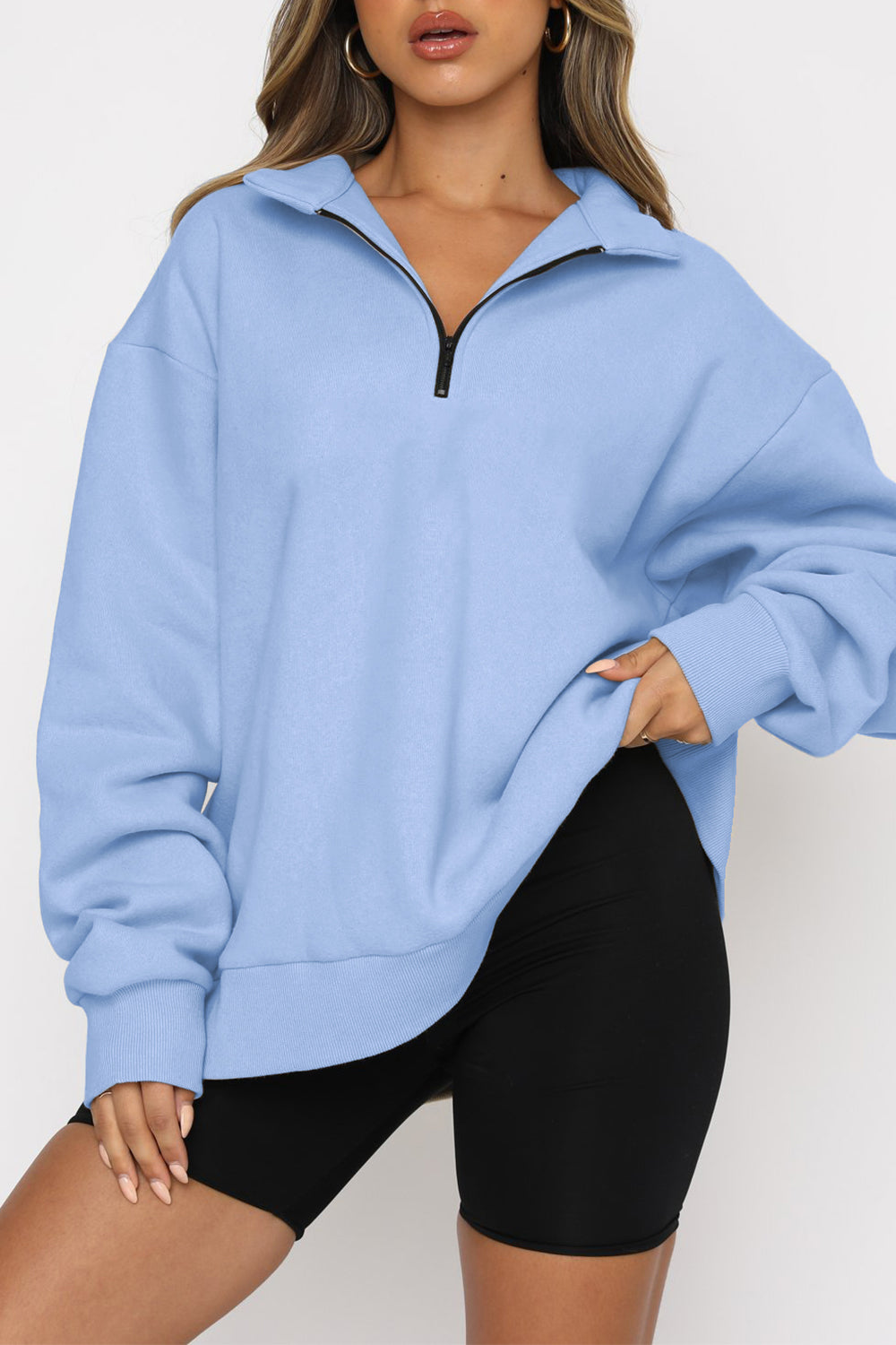 Black Quarter Zip Up Oversized Sweatshirt quantity
