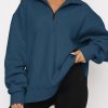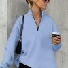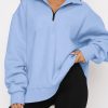 Lake Blue Lightweight Solid Zip Pullover Sweatshirts