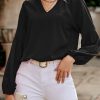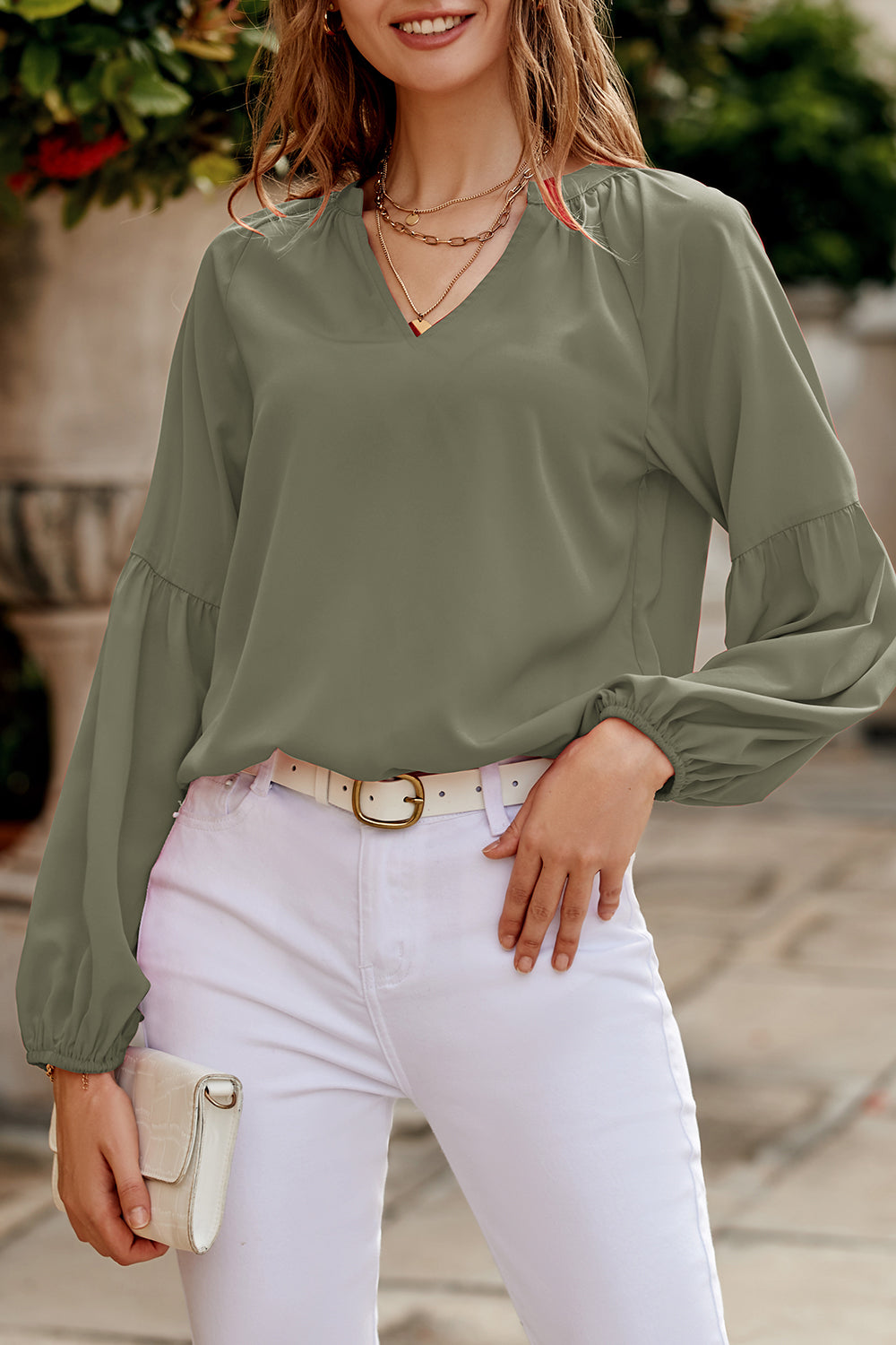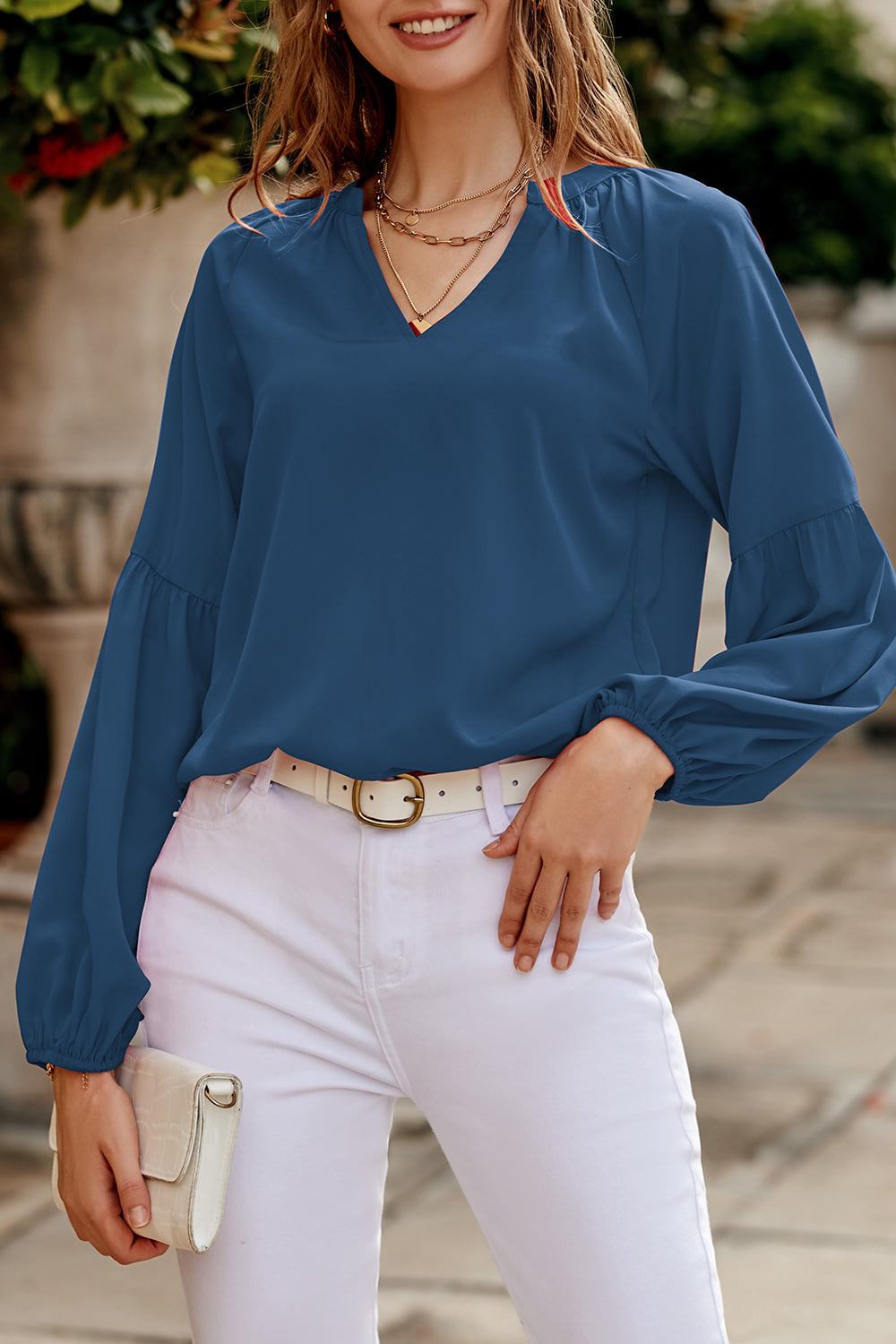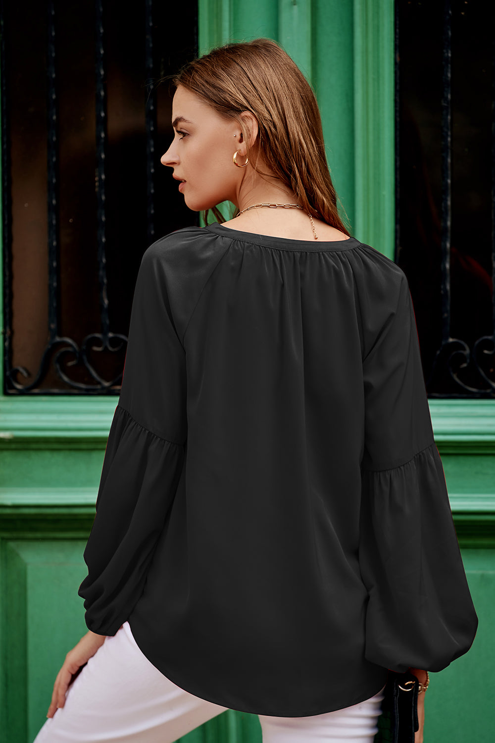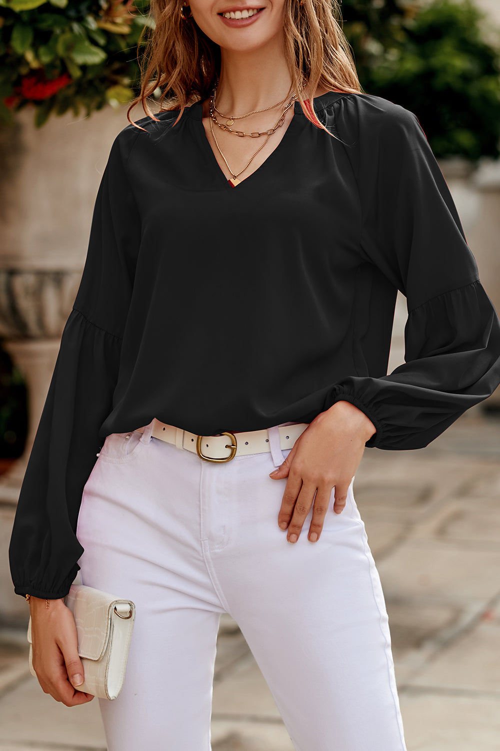 Black V Neck Oversized Chiffon Long Puff Sleeve Blouse quantity
