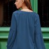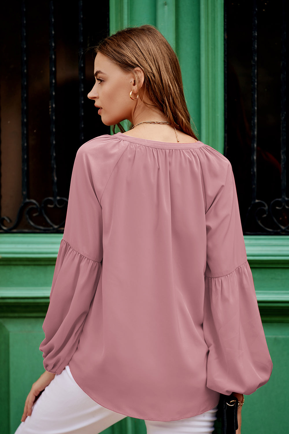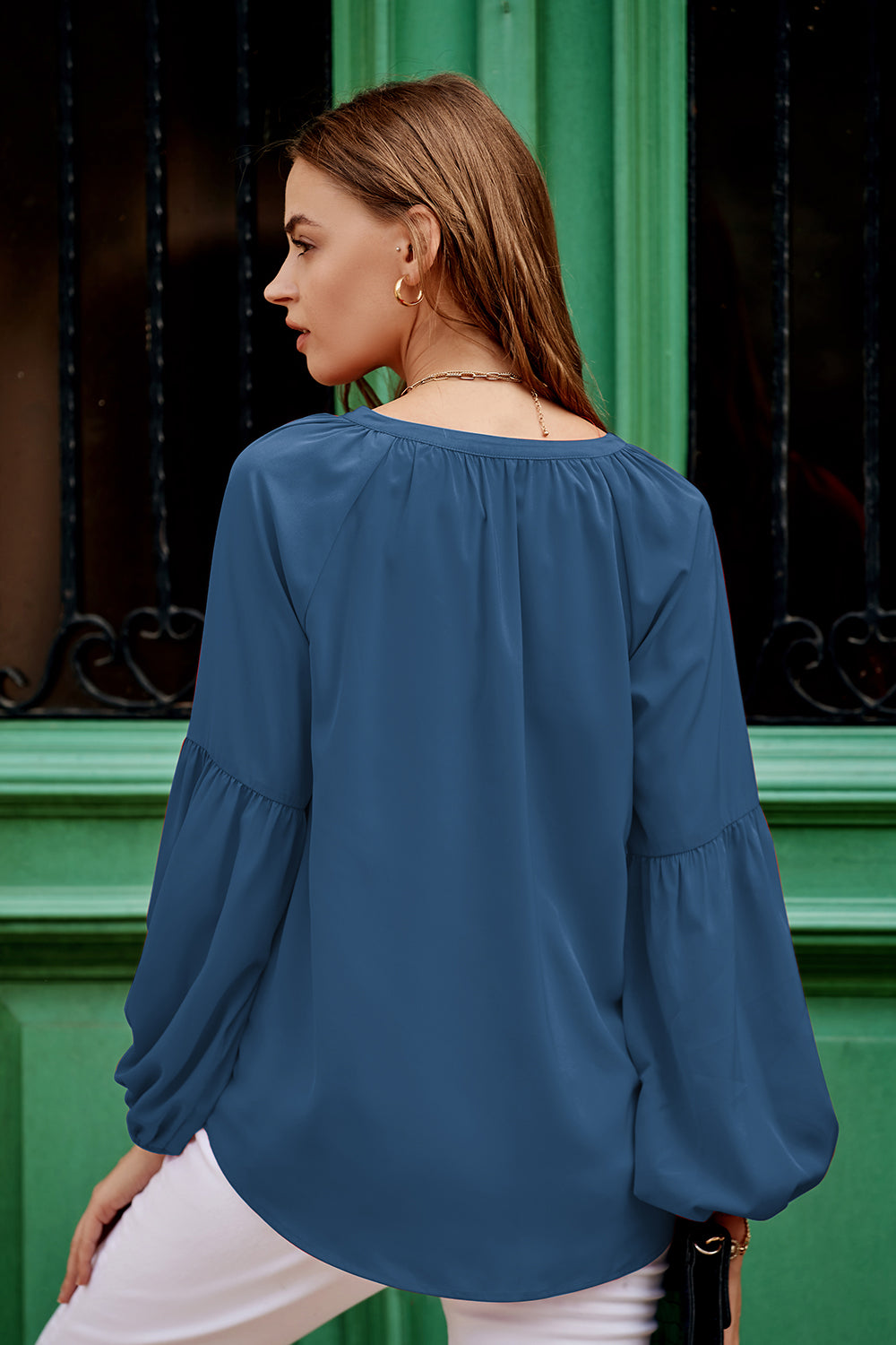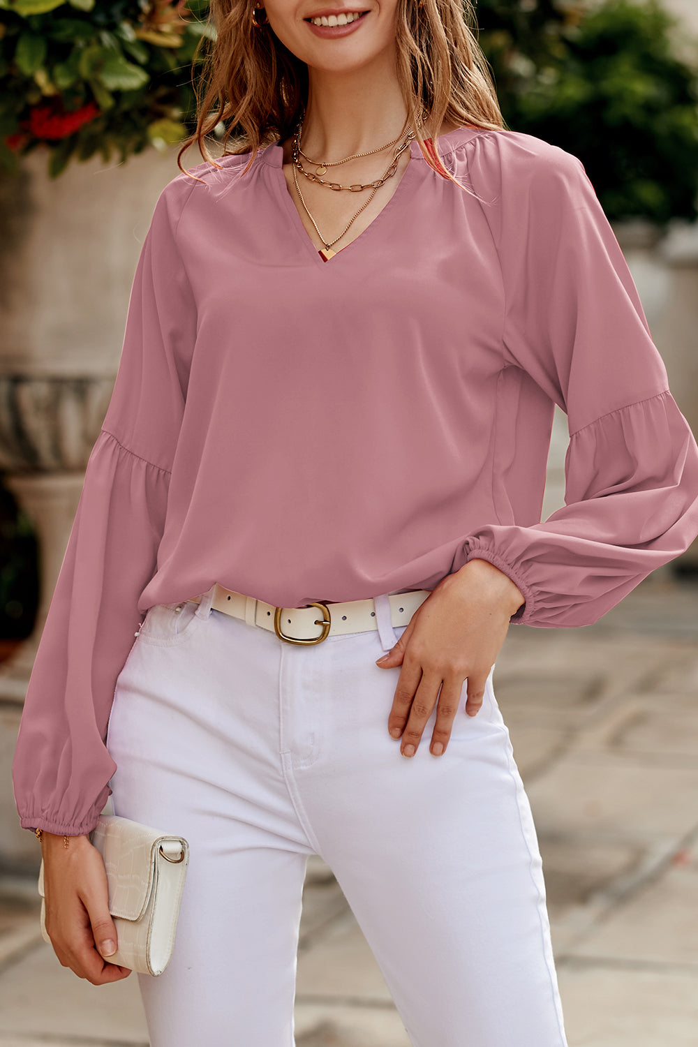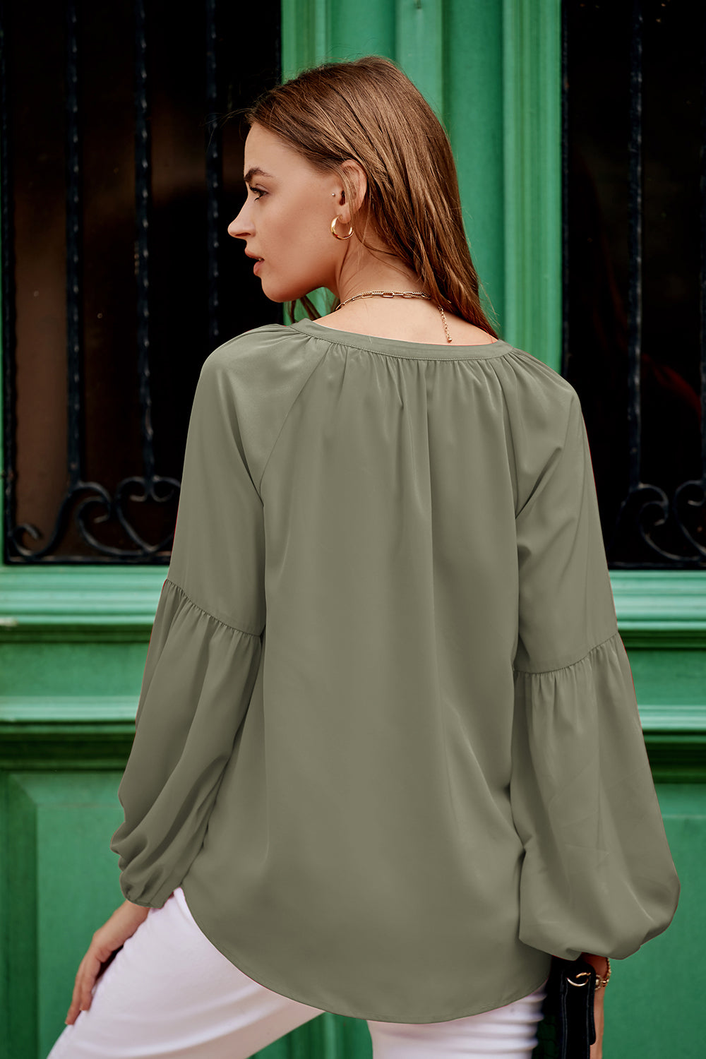 Black V Neck Oversized Chiffon Long Puff Sleeve Blouse quantity