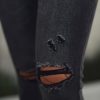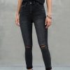 Casualdenimshorts Faded Dark Grey High Rise Distressed Skinny Jeans