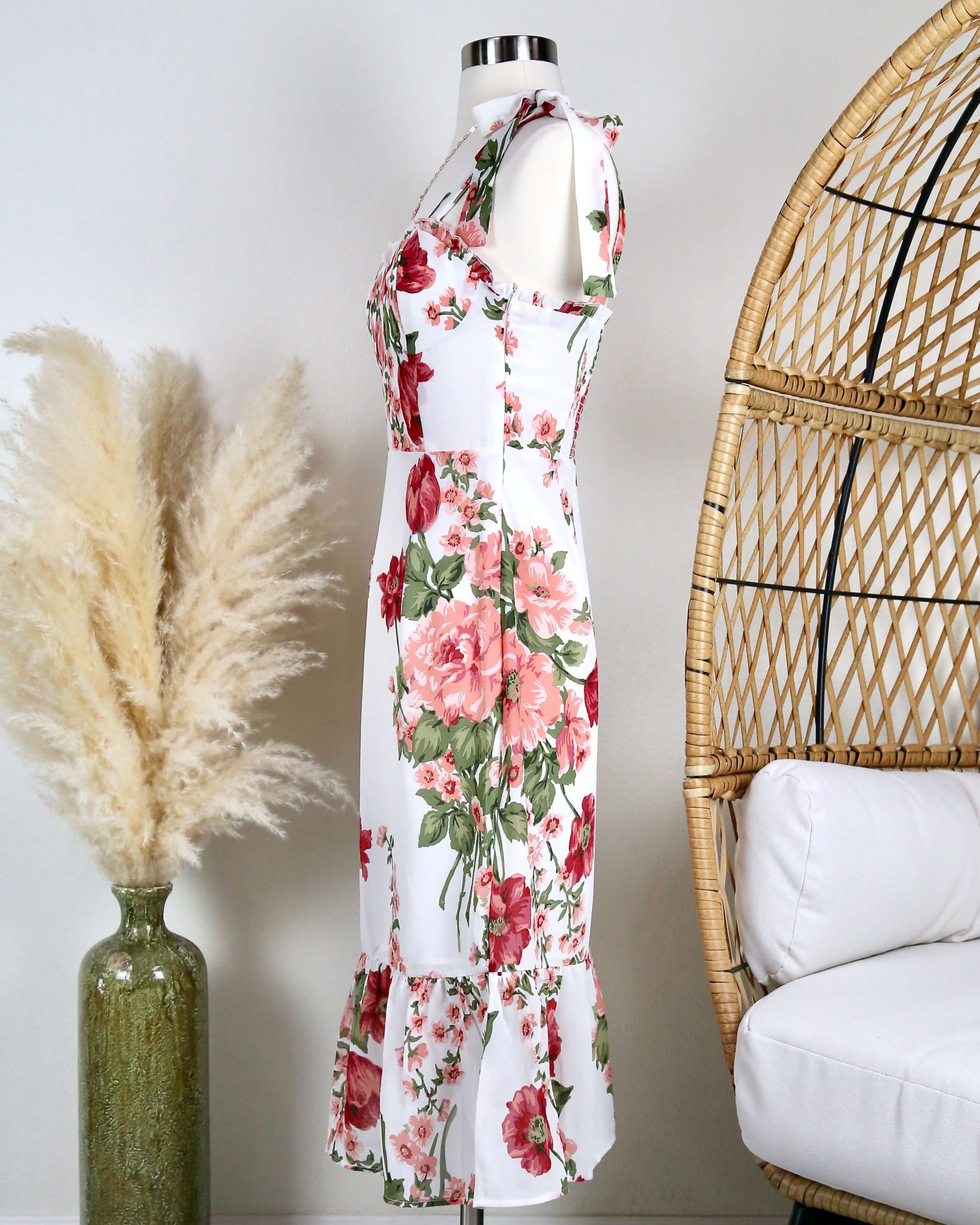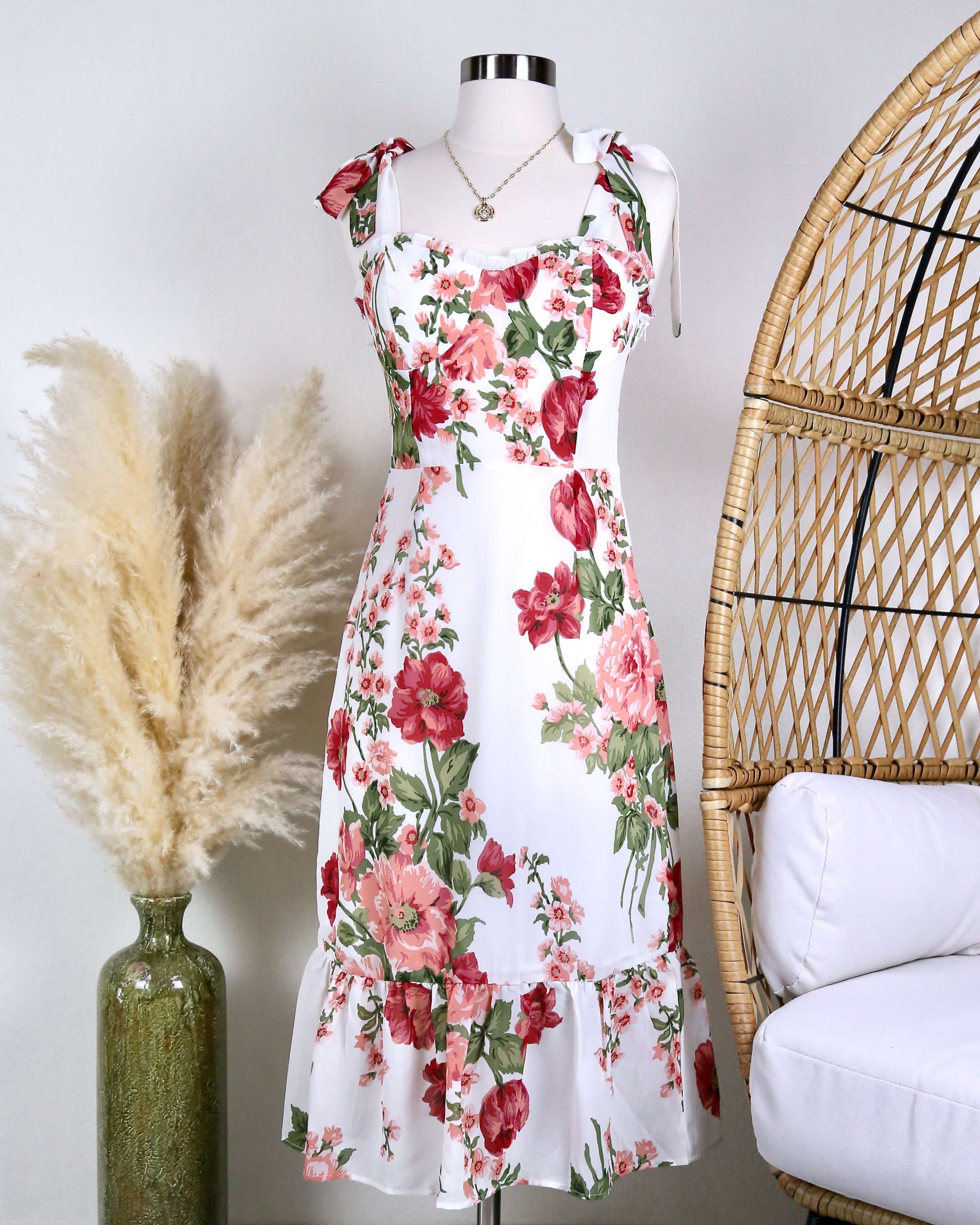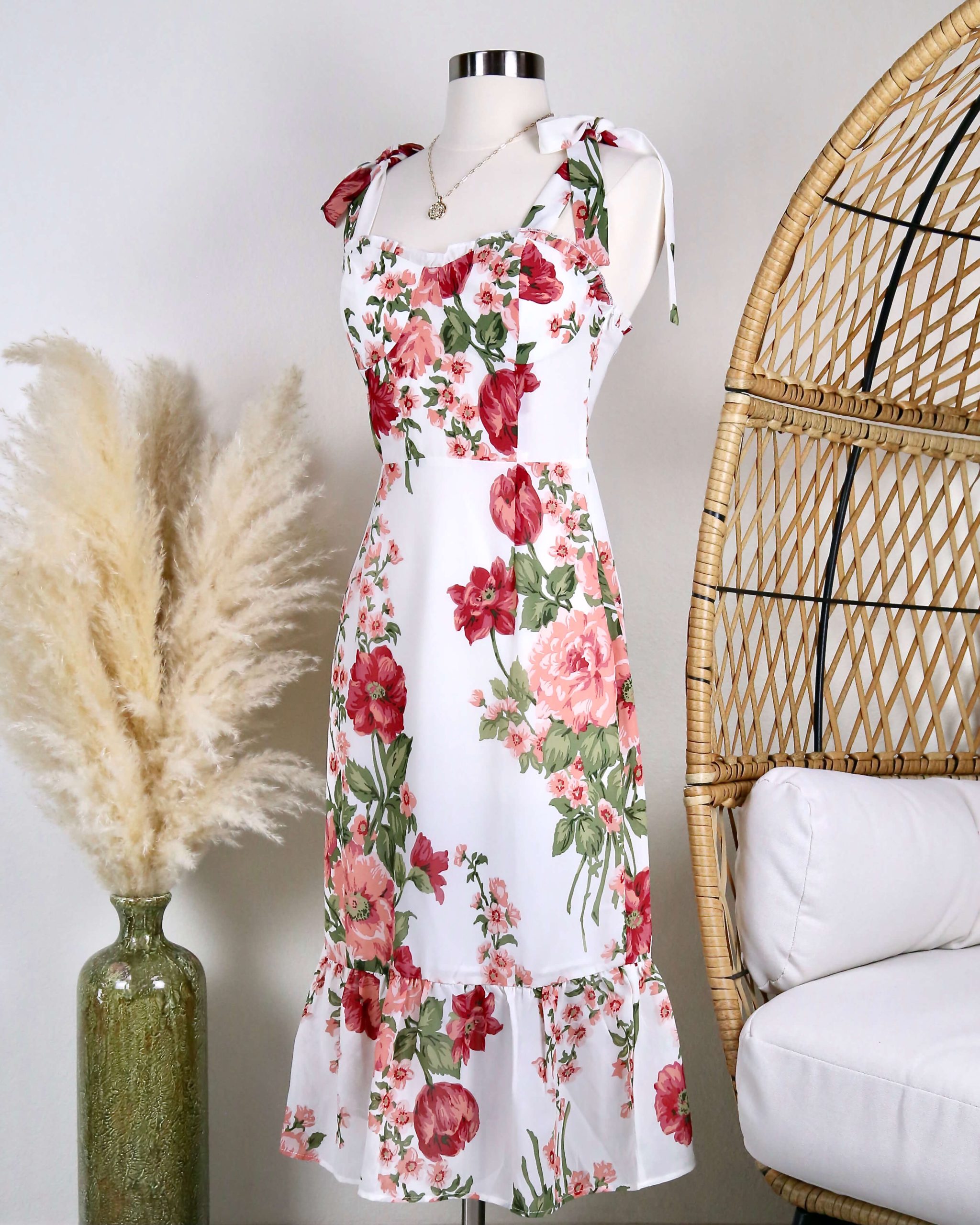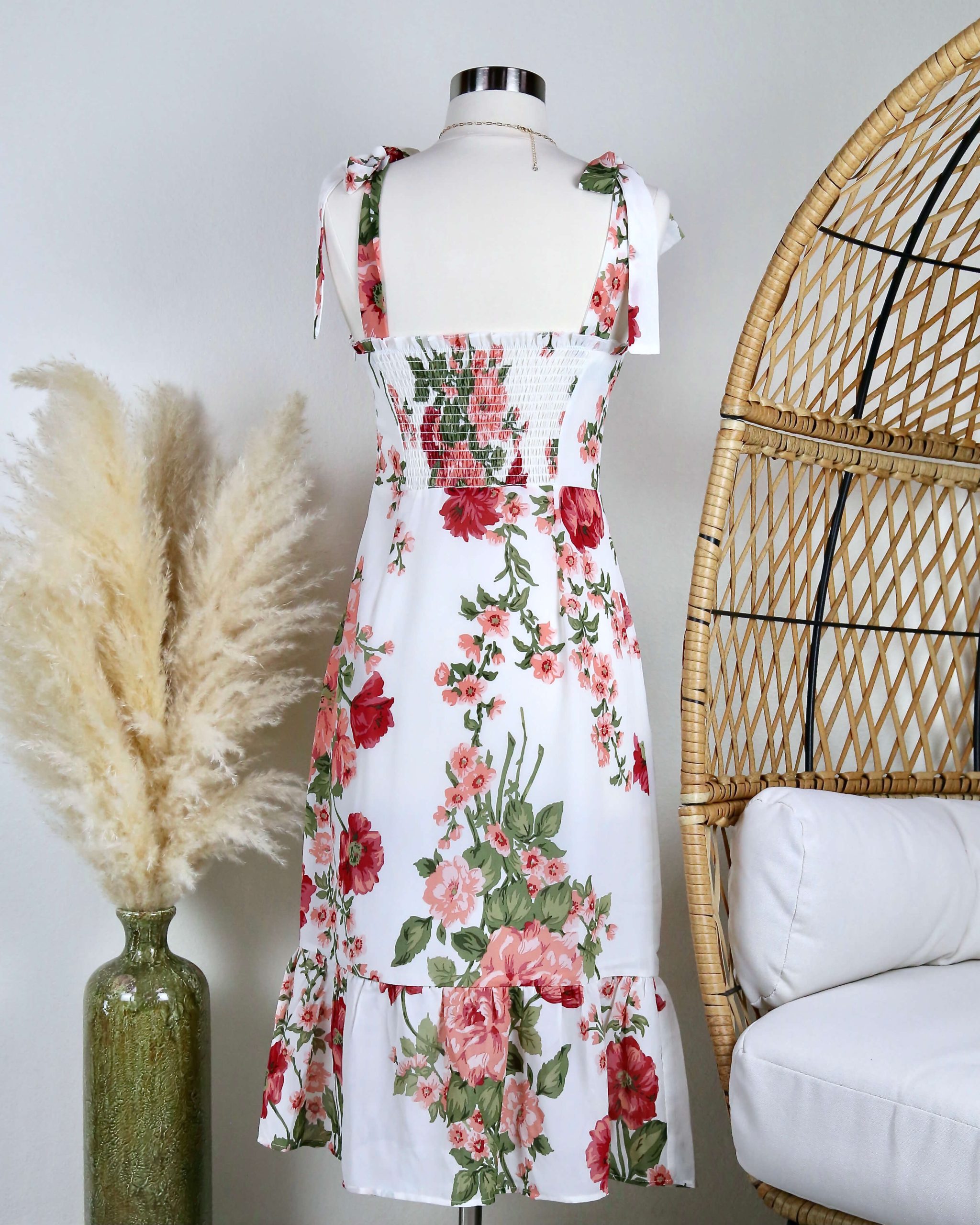 Casualdenimshorts Midi Floral Dress with Tie Straps