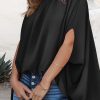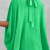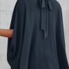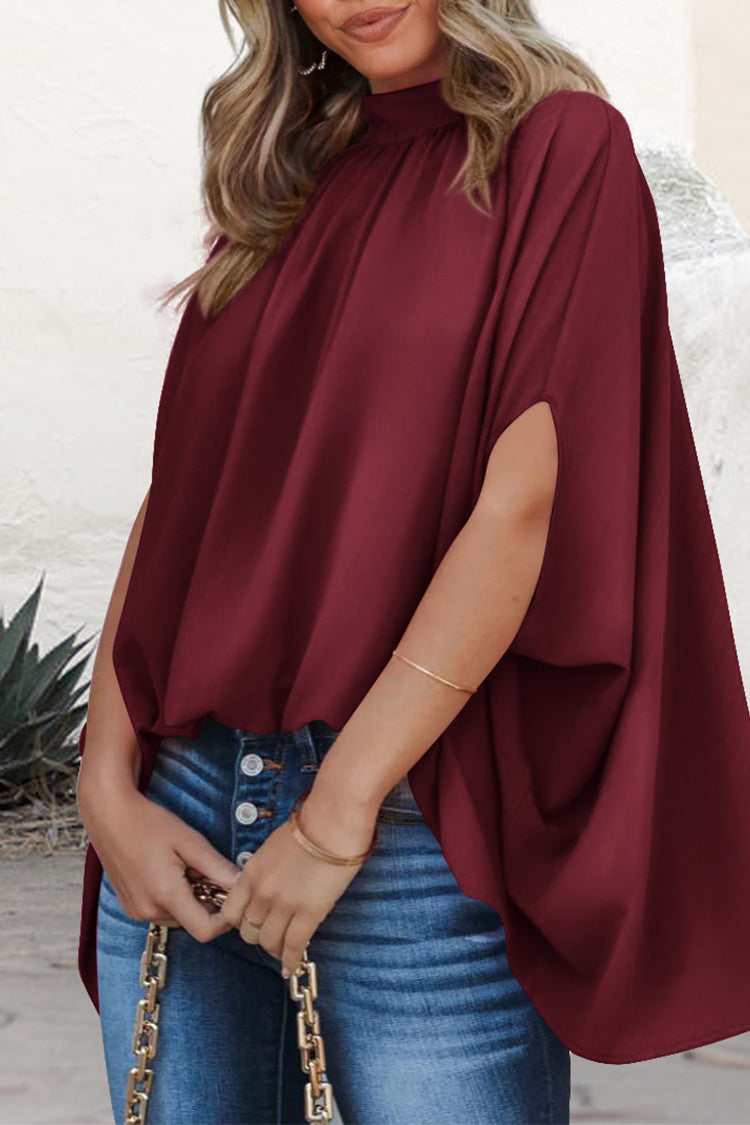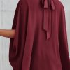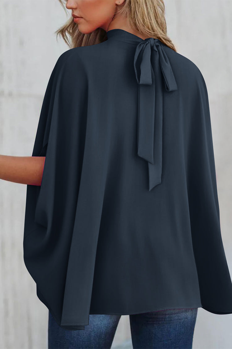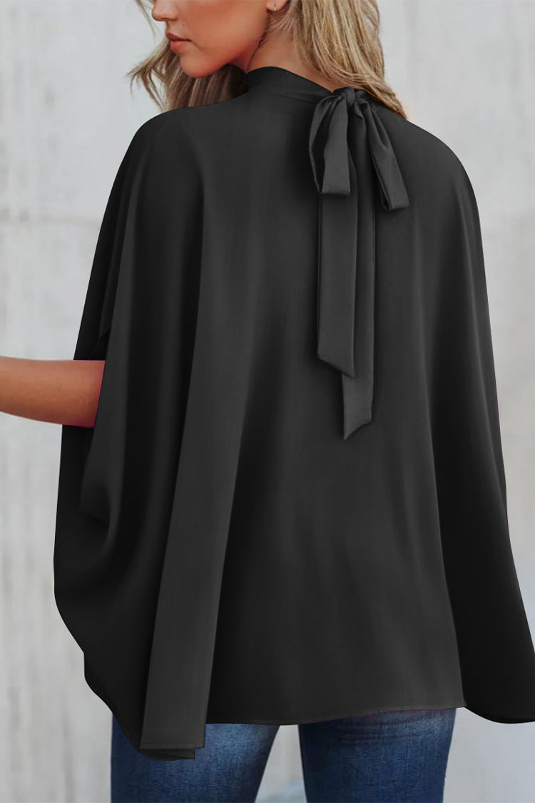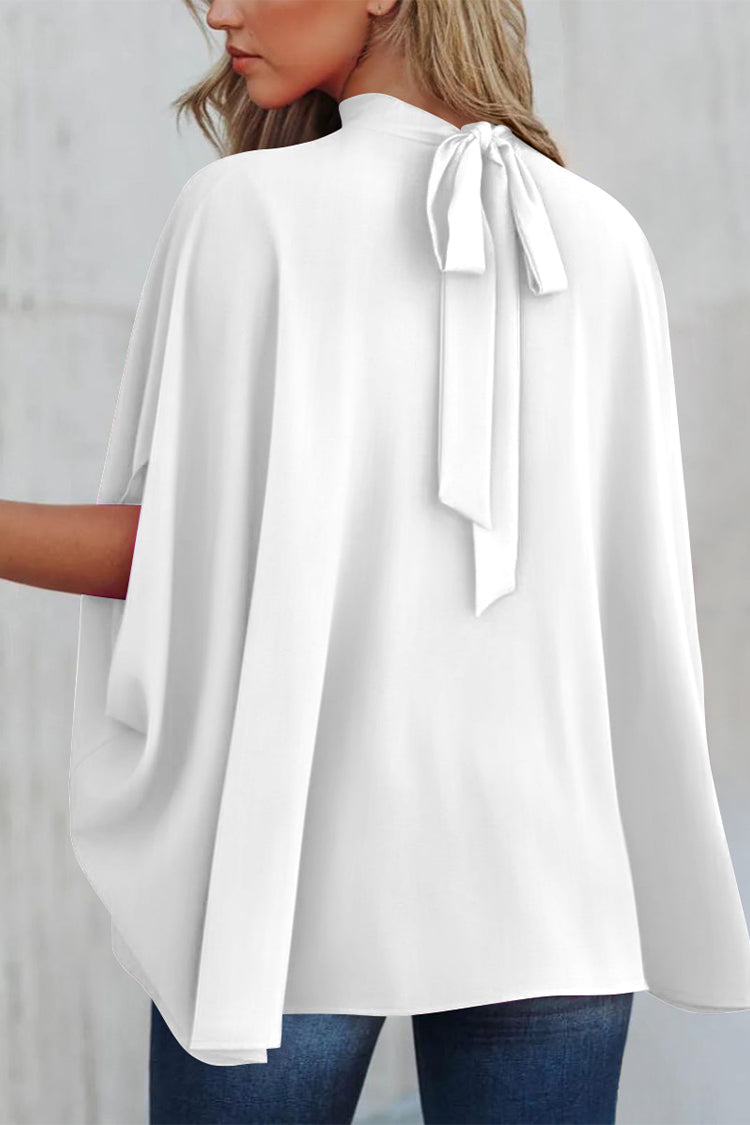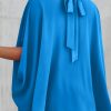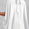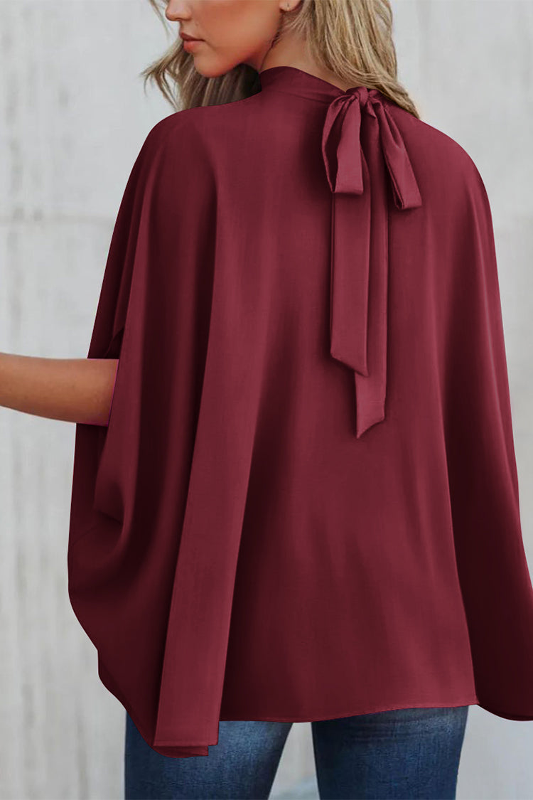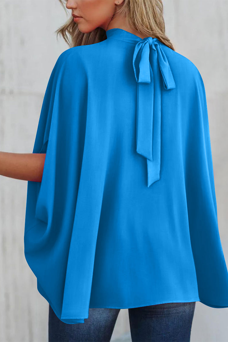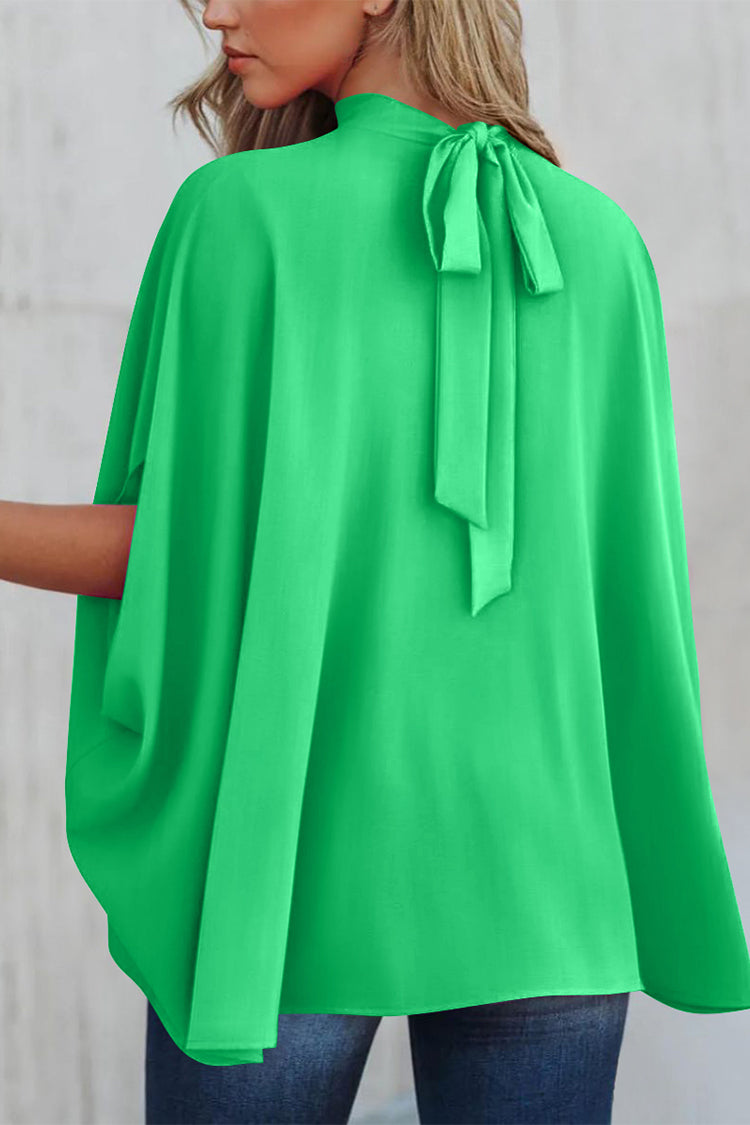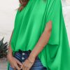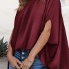 Casualdenimshorts Mock Neck Ruffle Strappy Back Oversized Satin Blouse