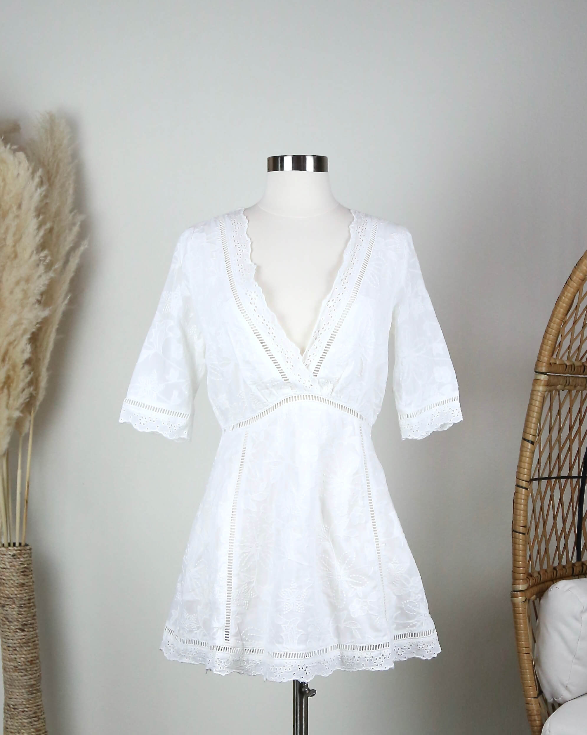 Casualdenimshorts Off Duty Plunging Festival Women's Dress in White quantity