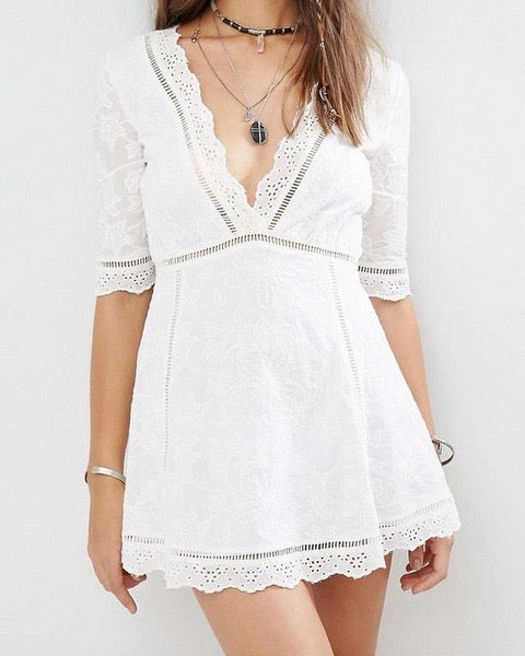 Casualdenimshorts Off Duty Plunging Festival Women’s Dress in White