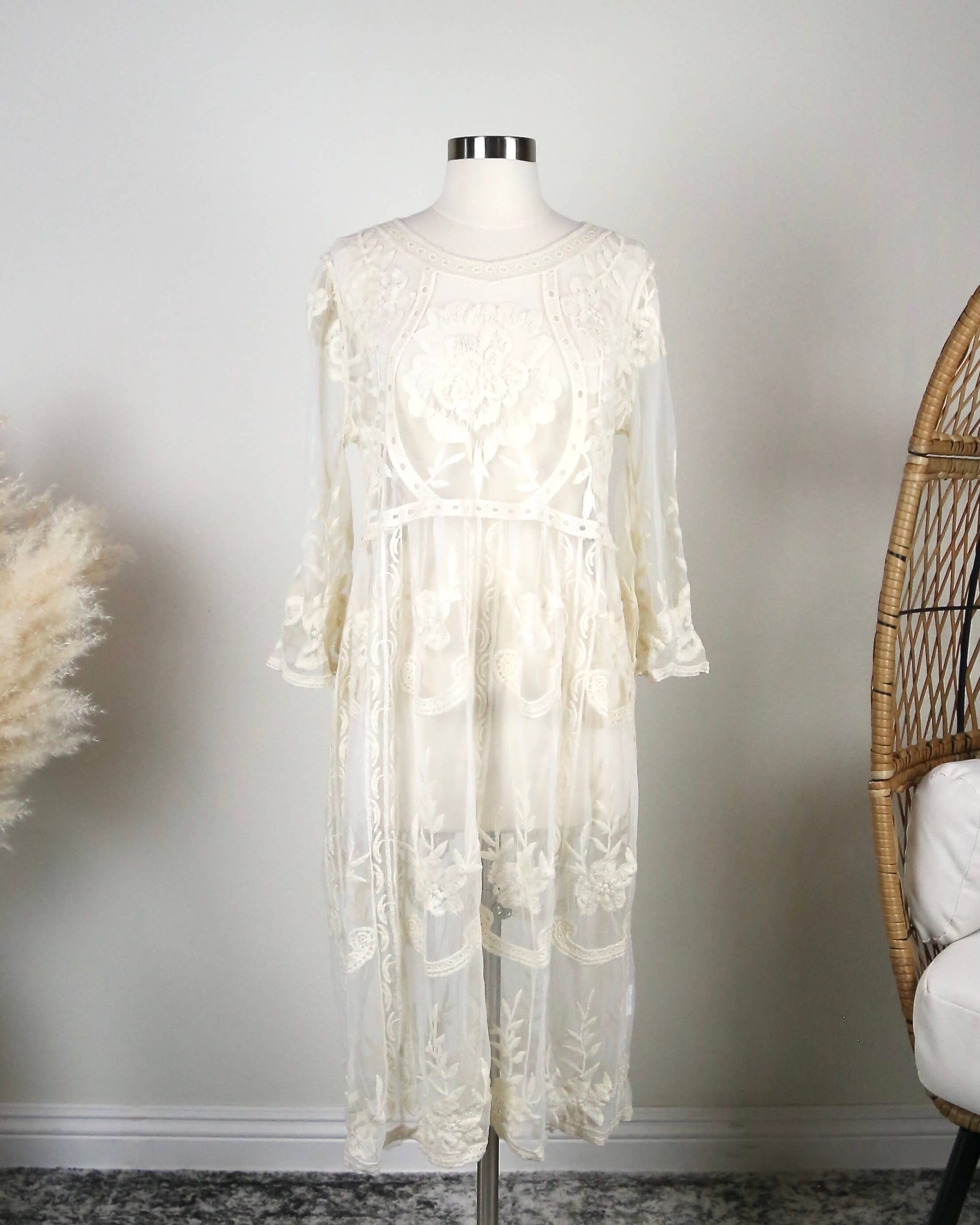 Crochet Cover-Up Midi Dress in Ivory quantity