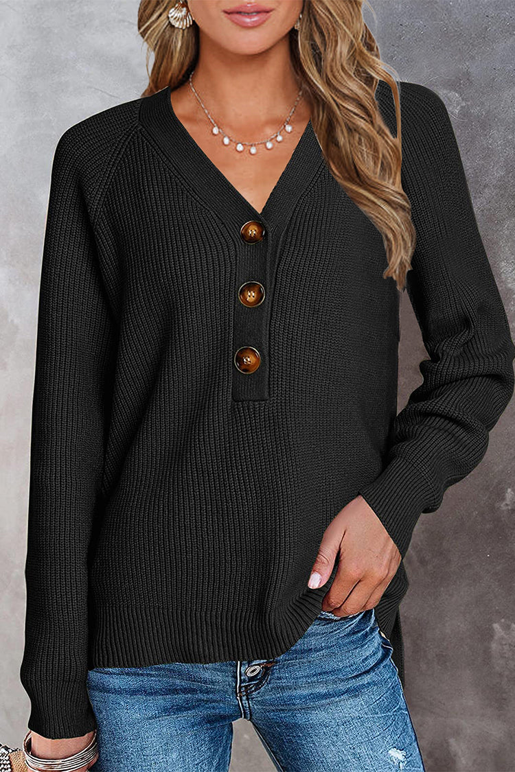 Half Button Raglan Sleeve V Neck Sweater quantity