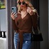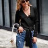 High Waist Tie Front Slim Fit Ribbed Knit Pullover Sweater