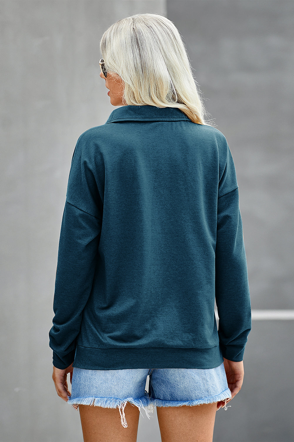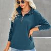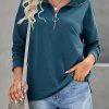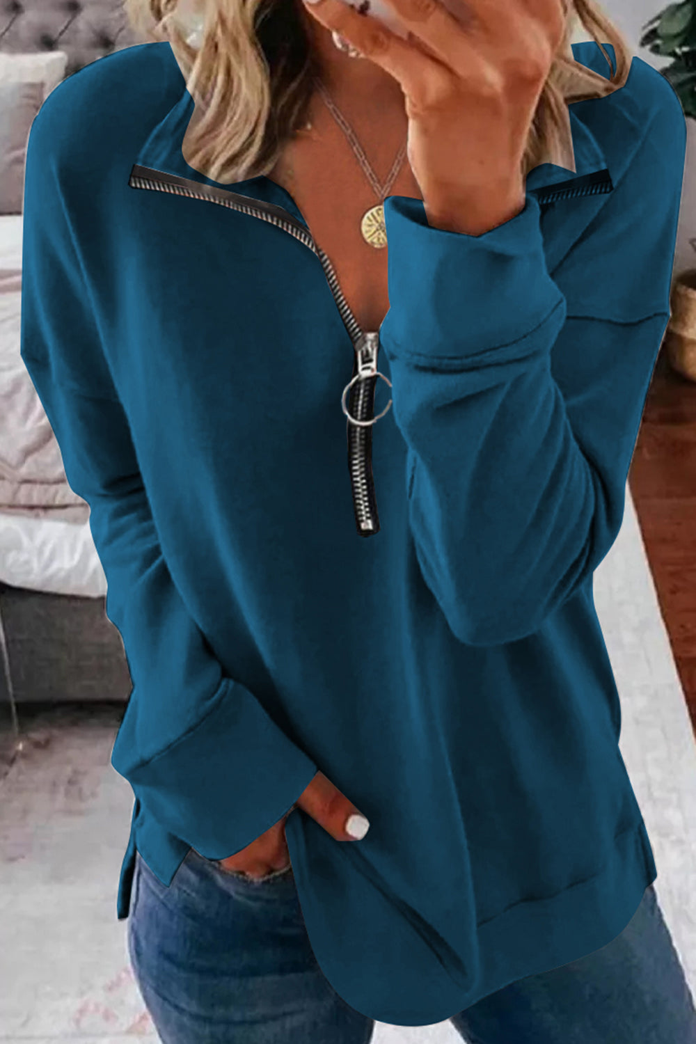 Lake Blue Lightweight Solid Zip Pullover Sweatshirts