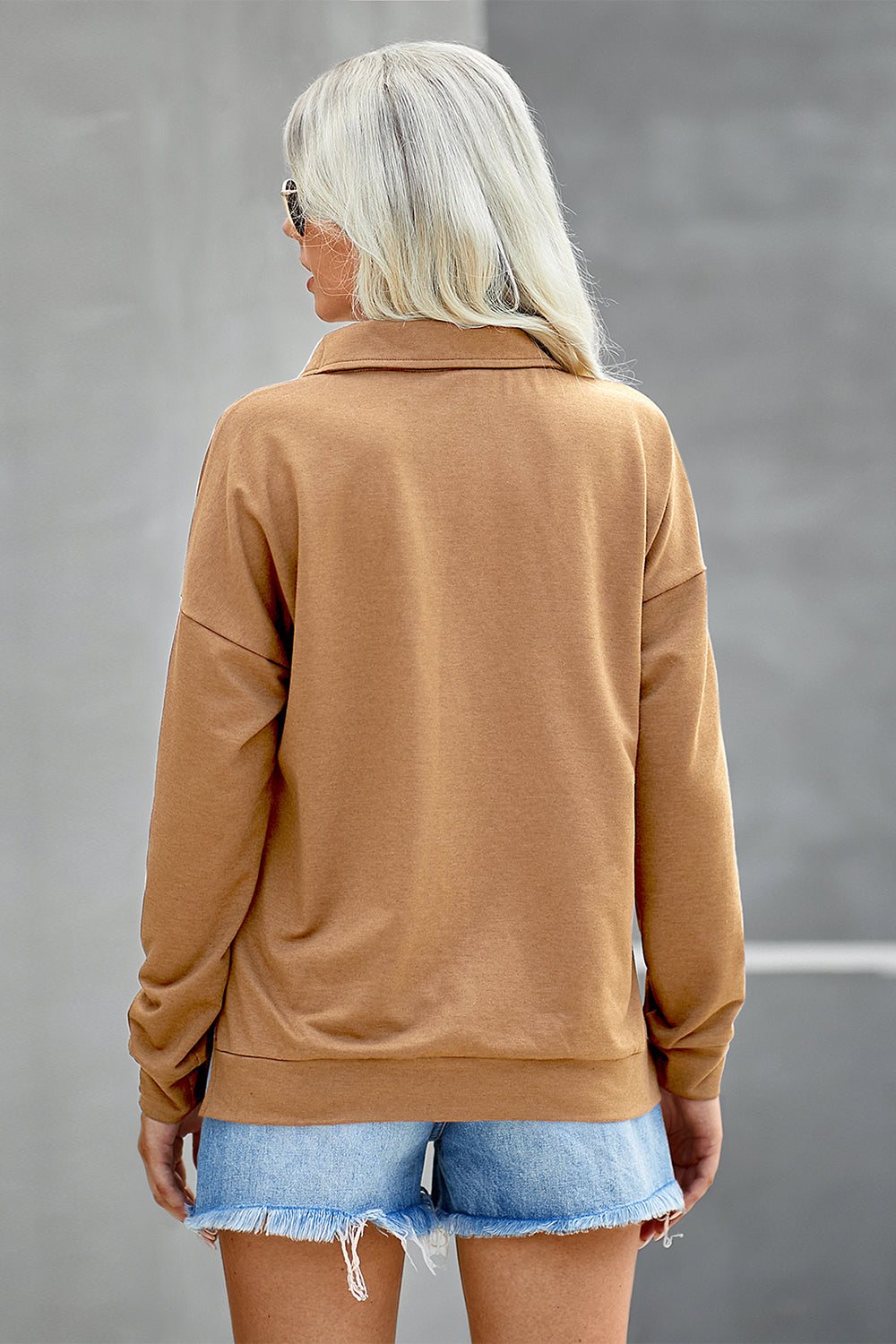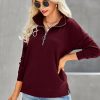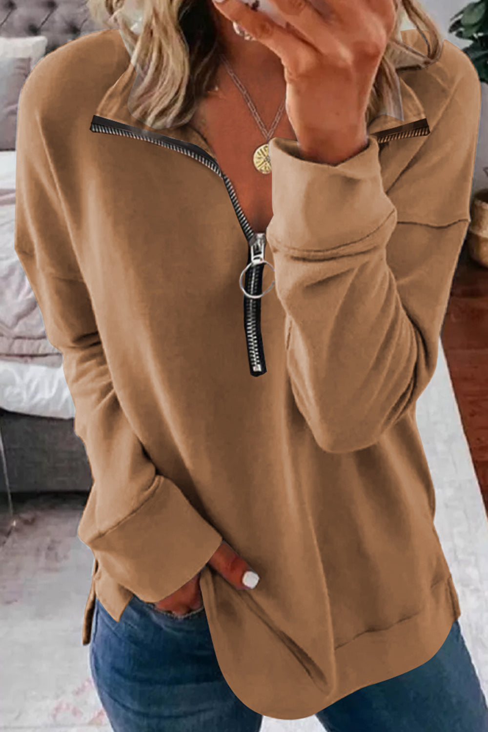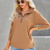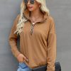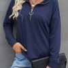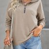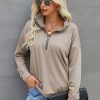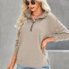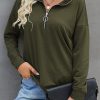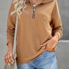 - COLOR OPPTIONS:This pullover sweatshirt has five colors to choose-Brown women’s long sleeve lapel zipper sweatshirt/Black half zip long sleeve womens casual tops/Light Grey casual tunic sweatshirt for women/Army green casual fall tops for women/Navy long sleeve women pullover sweatshirt.