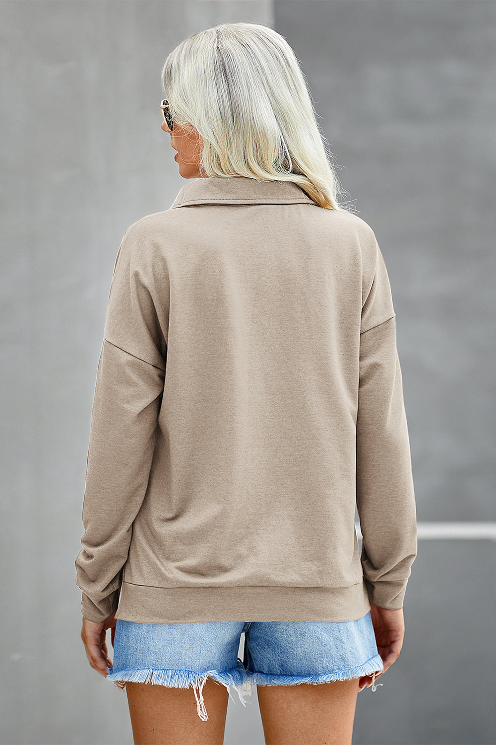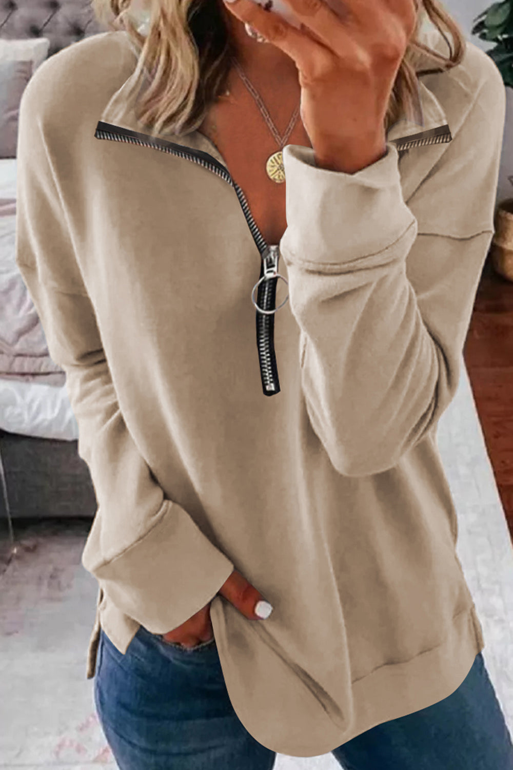 - This soft zipper sweatshirt with zipper design of the lapel can create a V-neck feel, which modify the face and the neck,loose fitting style is suitable for all body shapes.The simple solid color is versatile,matching everything and never goes out of style.