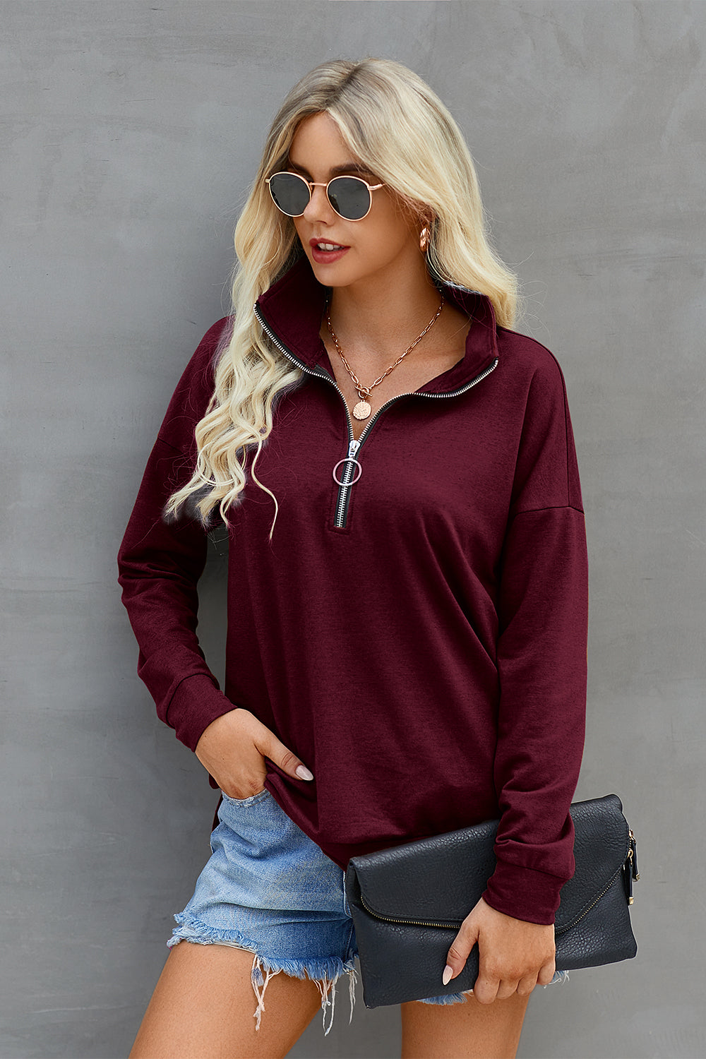 - This half zip up sweatshirt is the ideal choice in your wardrobe.unique high half zipper can better to keep your neck warm.This pullover sweatshirt is suitable for spring,fall and winter.Match with boots,jeans,skinny leggings for a fashion trend.