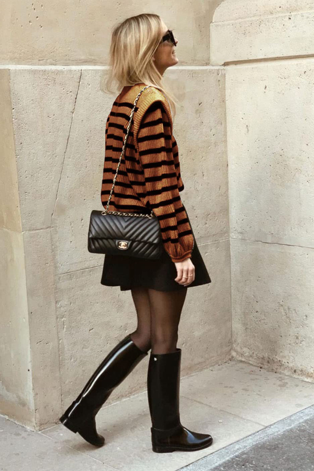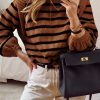 Long Lantern Sleeve Striped Ribbed Knit Pullover Top