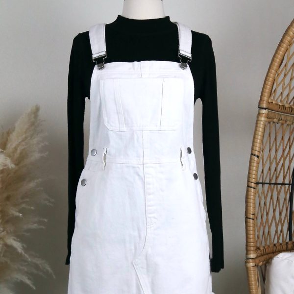 Ultra-soft navy dress featuring a swinging trapeze silhouette with a tiered design and an acid-wash finish for that effortless vintage inspired vibe. Button-up front, adjustable shoulder straps, and white scalloped lace at the hemline. Unlined, opaque.