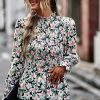 Puff Sleeve Smocked Print Babydoll Tunic Blouse