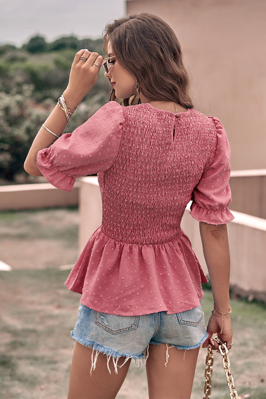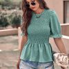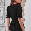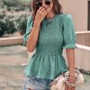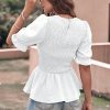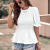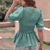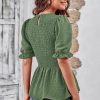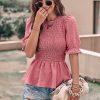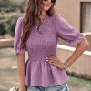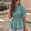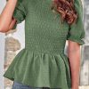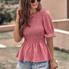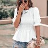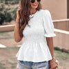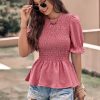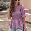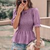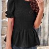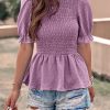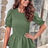 Puff Sleeve Smocked Tunic Ruffle Babydoll Top quantity