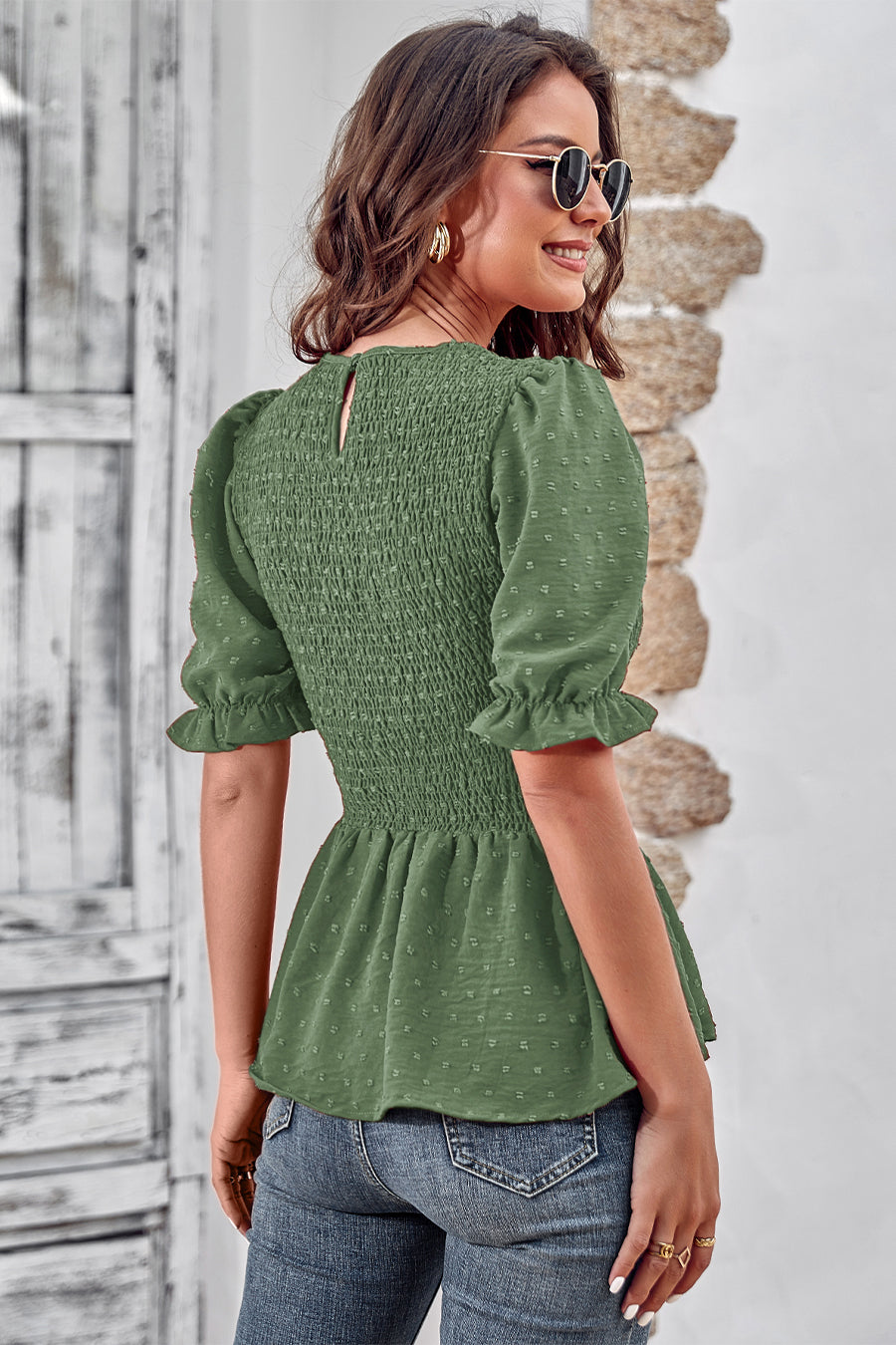 Puff Sleeve Smocked Tunic Ruffle Babydoll Top