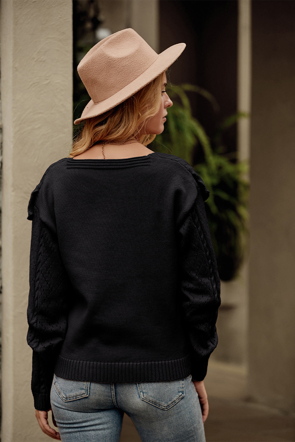 Ruffle Cropped Button Down Knitted Cardigan quantity