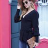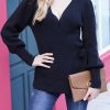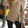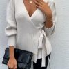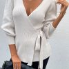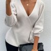 Sexy V Neck Balloon Sleeve Ribbed Wrap Knit Pullover Sweater quantity