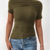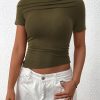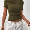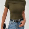Design: Asymmetrical neckline, slim-fit and short sleeves