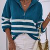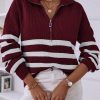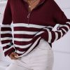 V Neck Collar Ribbed Knitted Stripe Pullover Sweater
