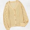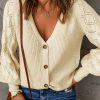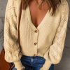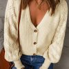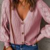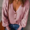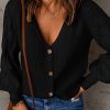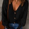 V Neck Long Sleeve Button Down Ribbed Sweatshirts Cardigan