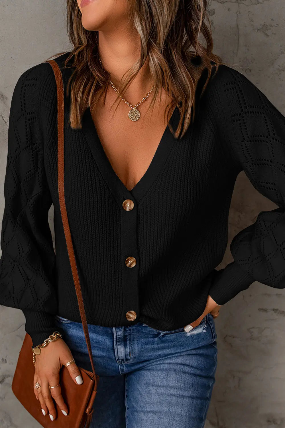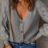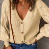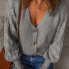 V Neck Long Sleeve Button Down Ribbed Sweatshirts Cardigan quantity