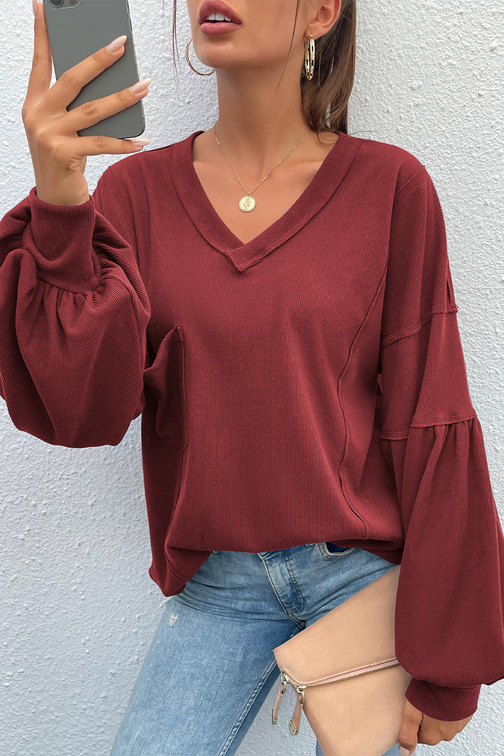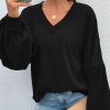 - FEATURES – Tops For Women / Womens Long Sleeve Tops / Blouses For Women / Soft And Lightweight Material / Lantern Sleeves With Patchwork Design / Tiered Long Sleeve / Feminine V Neckline / Soft Rib Knit Cuffs / Classy Solid Color / Front Side Pocket / Stylish Two Side Slit / Loose Fit / Perfect Tailored Cut /Relaxed / Fashion / Cute / Basic Casual Style / For Spring, Fall, Autumn, Winter / Size: S, M, L, Xl